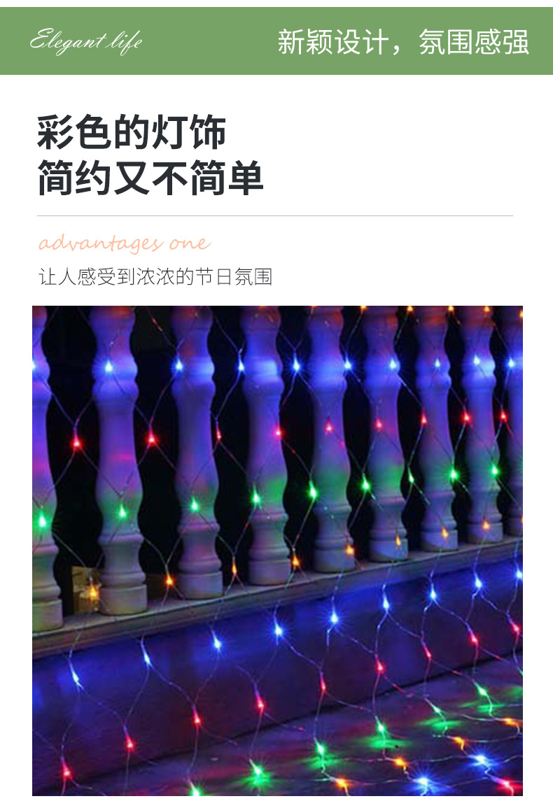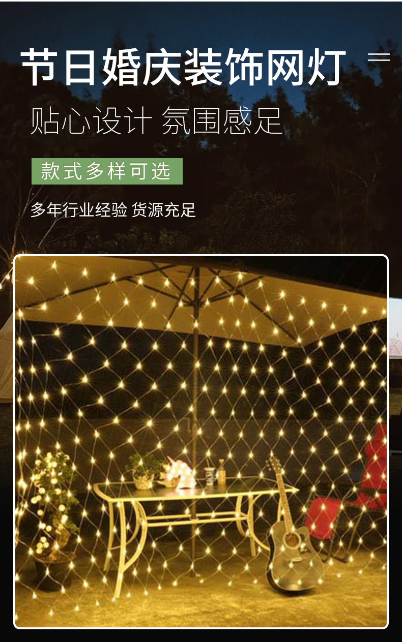 Ingeniería al aire libre iluminación impermeable lámpara de red LED lámpara de parpadeo decoración de vacaciones lámpara de cadena de red de pesca cortina lámpara de cadena de jardín para fotos