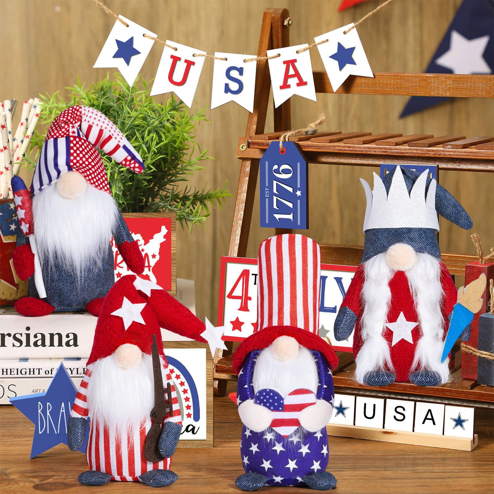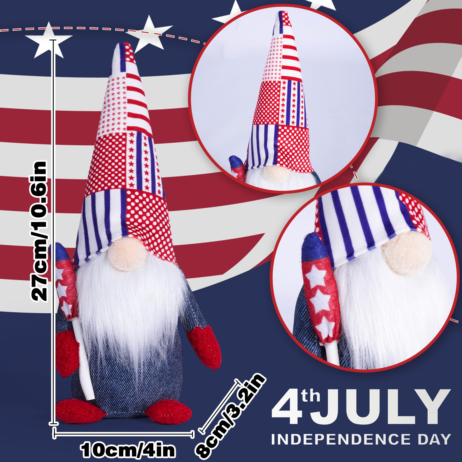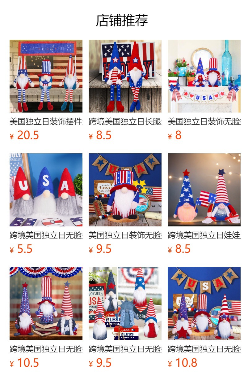 Día de la Independencia transfronteriza muñeca decoración sin cara muñeca enana regalos de vacaciones decorativa atmósfera creativa