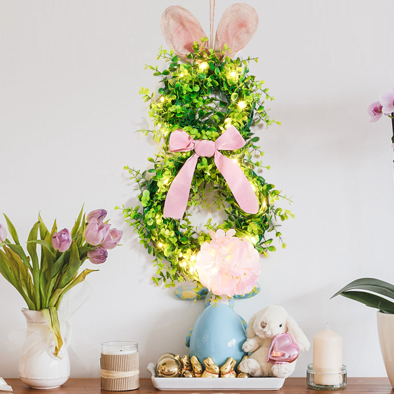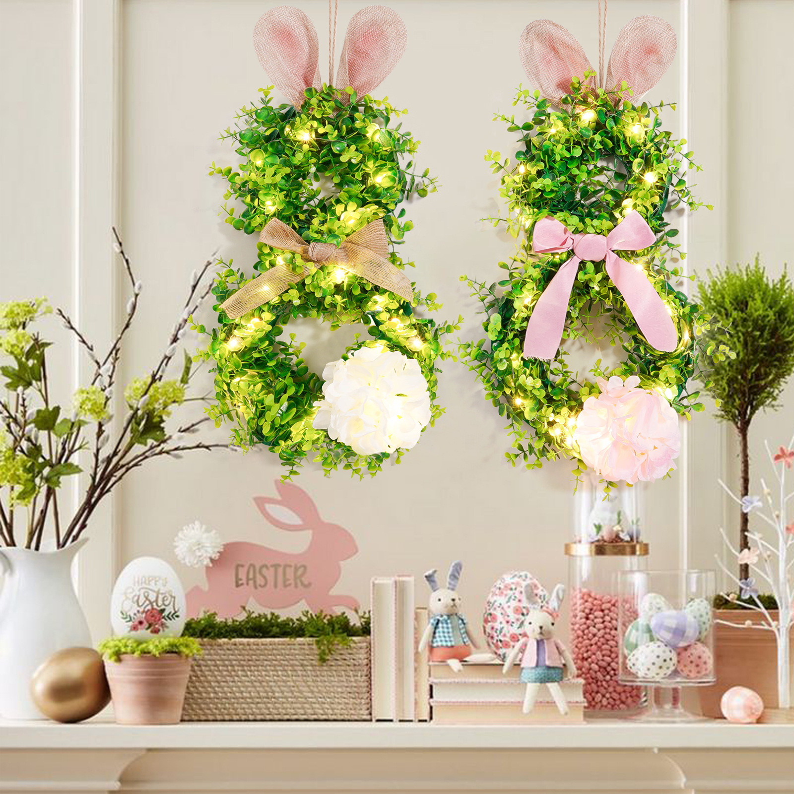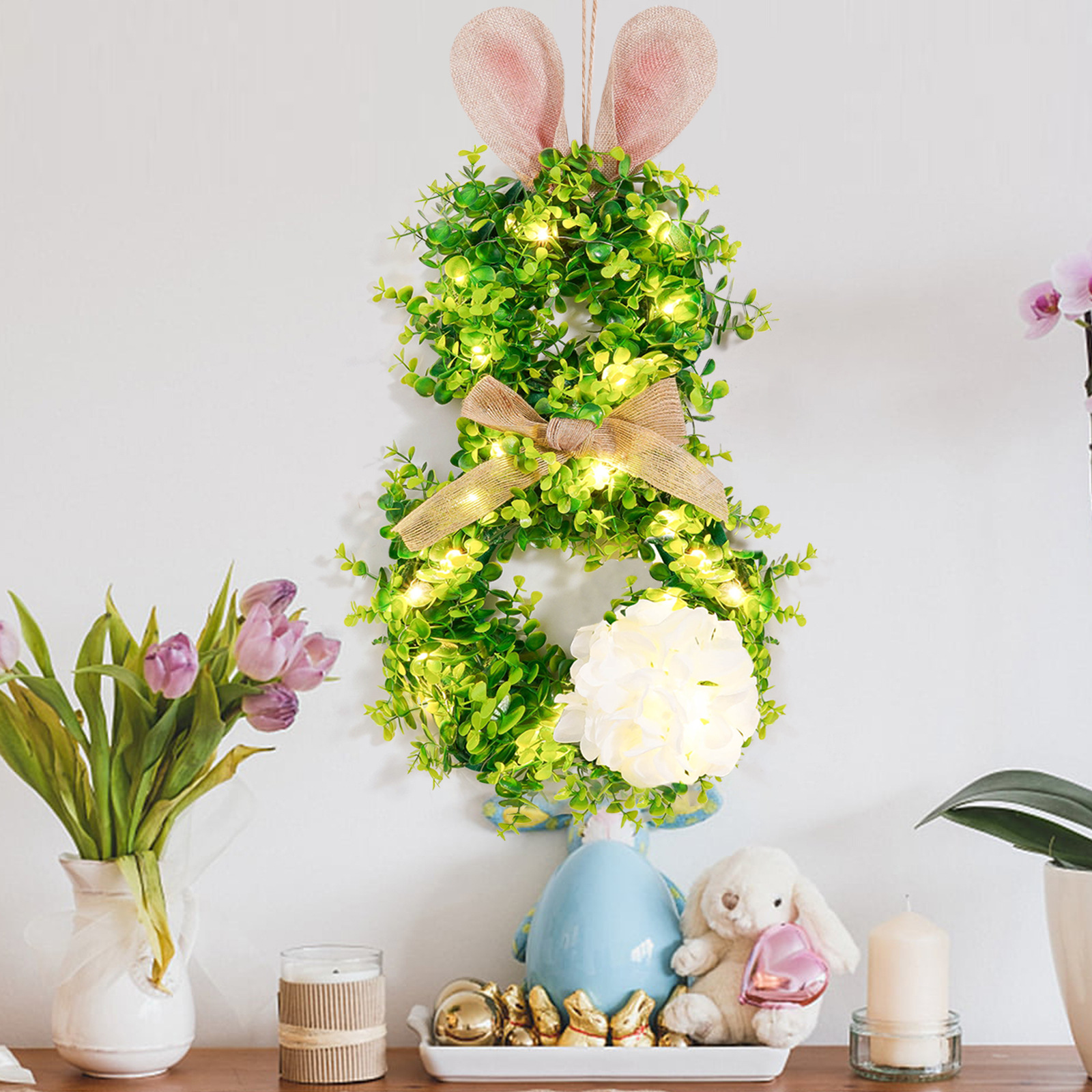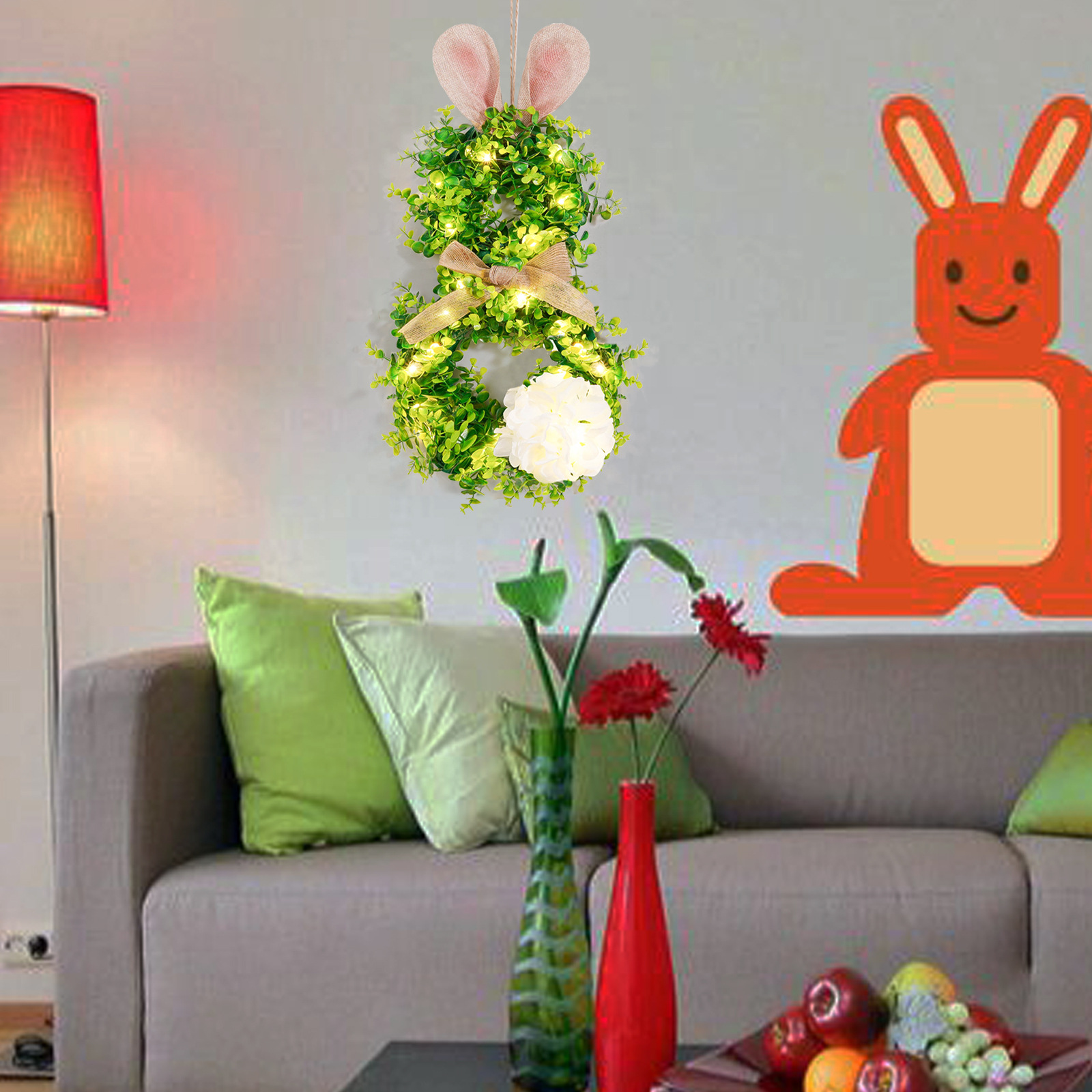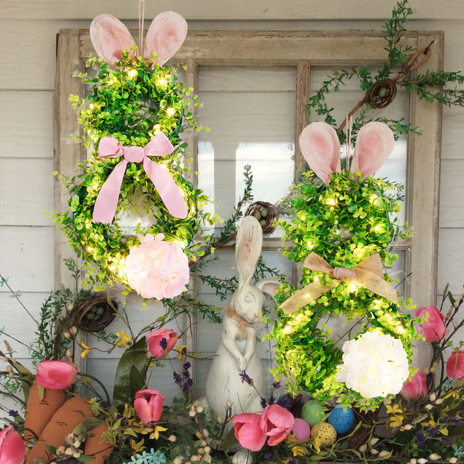 Pascua transfronteriza colgante orejas de conejo iluminantes guirlandas guirlandas con luces orejas de conejo de Pascua decoración guirlandas