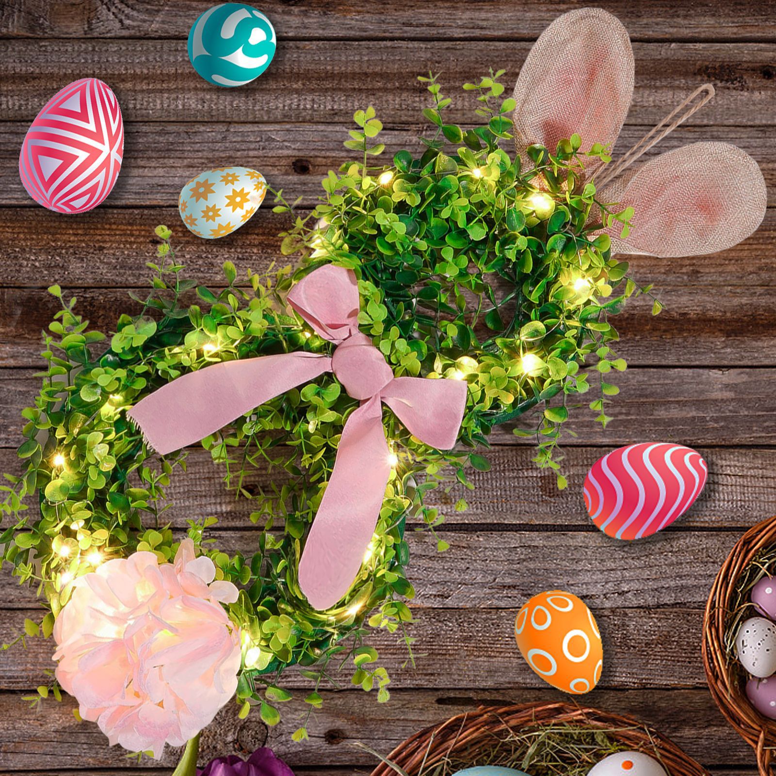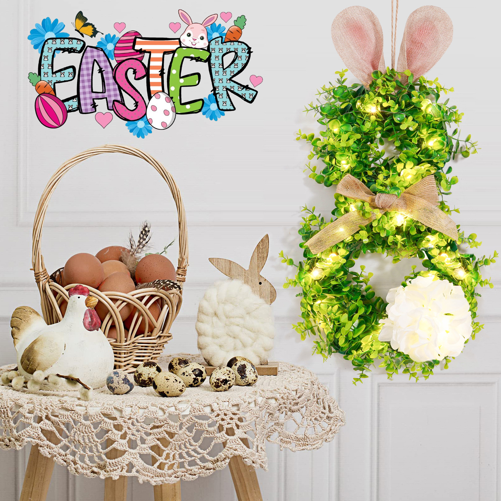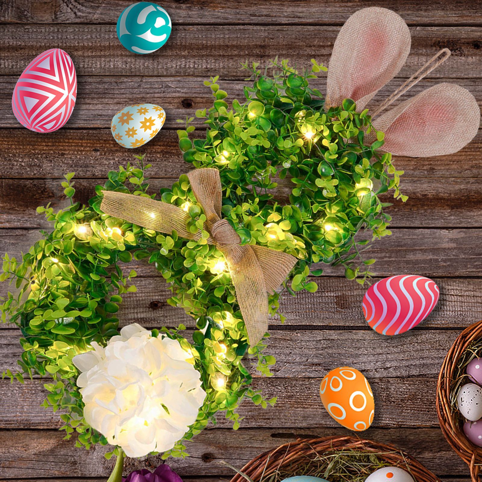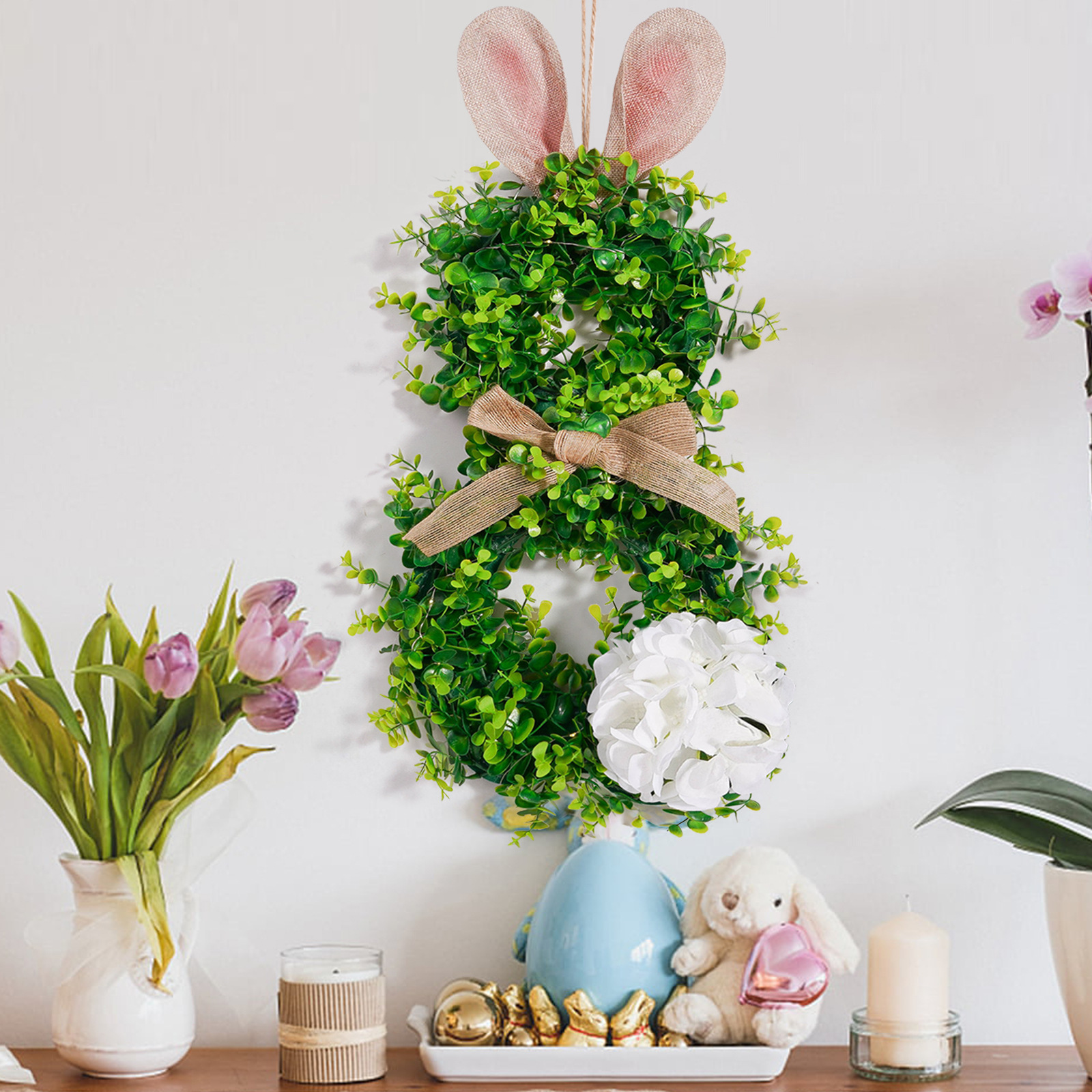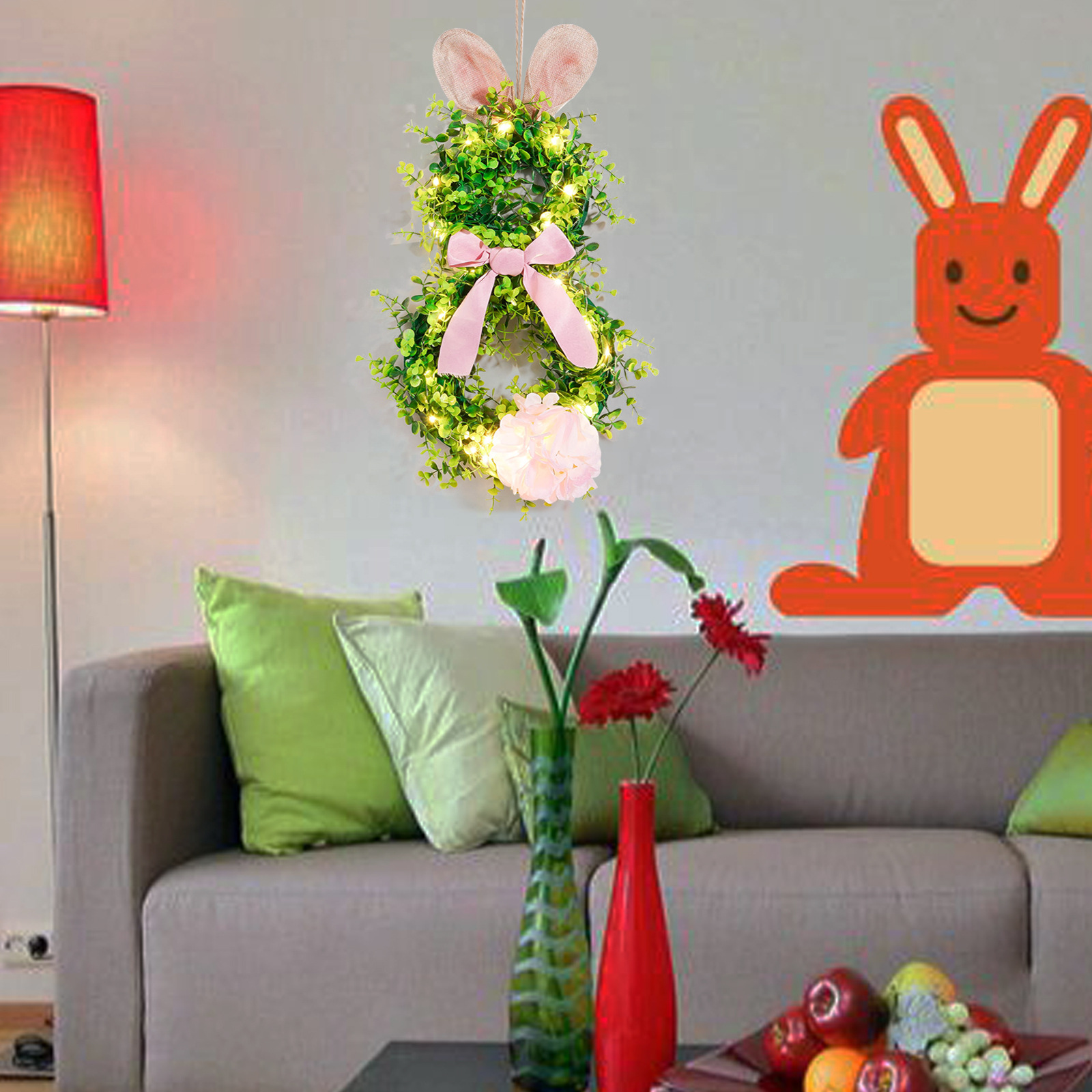 Pascua transfronteriza colgante orejas de conejo iluminantes guirlandas guirlandas con luces orejas de conejo de Pascua decoración guirlandas