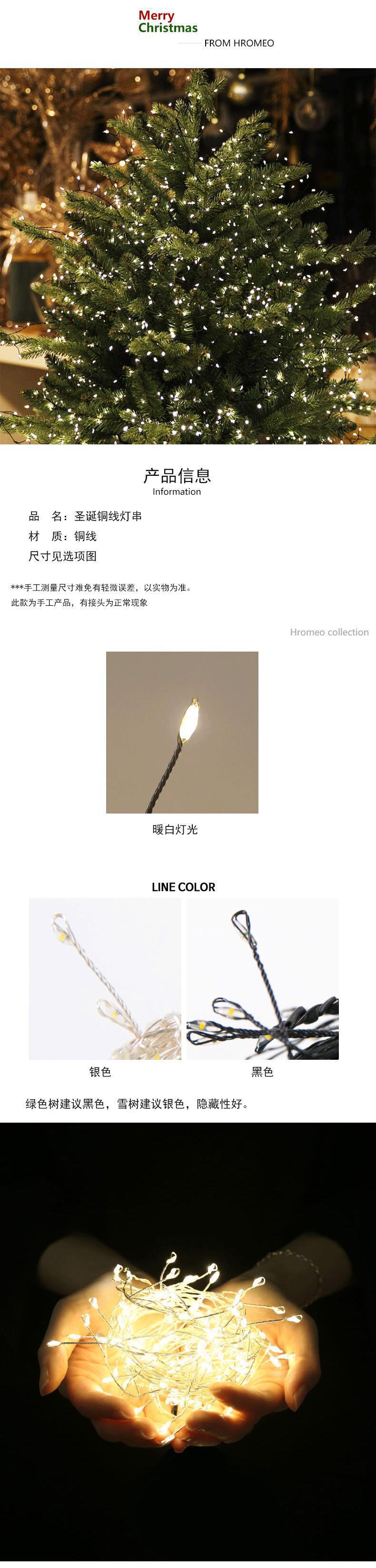 Decoración navideña LED Control remoto Cable verde oculto de baja tensión Lámpara de cobre Decoración navideña Lámpara de petardos Lámpara de árbol de Navidad Cadena de luces