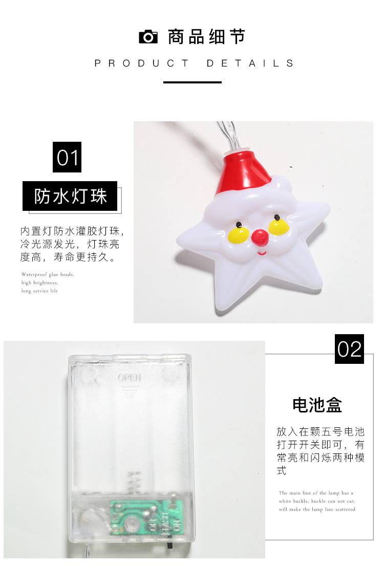 | Color | 1,5 metros 10 luces 2 baterías de luz larga, 1,5 metros 10 luces USB de luz a menudo encendidas, 3 metros 20 luces 3 baterías (luz larga + flash), 3 metros 20 luces USB de control remoto, 6 metros 40 luces 3 baterías (luz larga + flash), 6 metros 40 luces USB de control remoto, 6 metros 40 luces USB de control remoto, 10 metros 80 luces 3 baterías (luz larga + flash), 10 metros 80 luces USB de control remoto, 10 metros 80 luces USB de control remoto, 10 metros 80 luces USB de control remoto a prueba de agua, 10 metros 100 luces 100 luces 3 cajas flash, 10 metros 100 luces USB de control remoto modelo brillante |