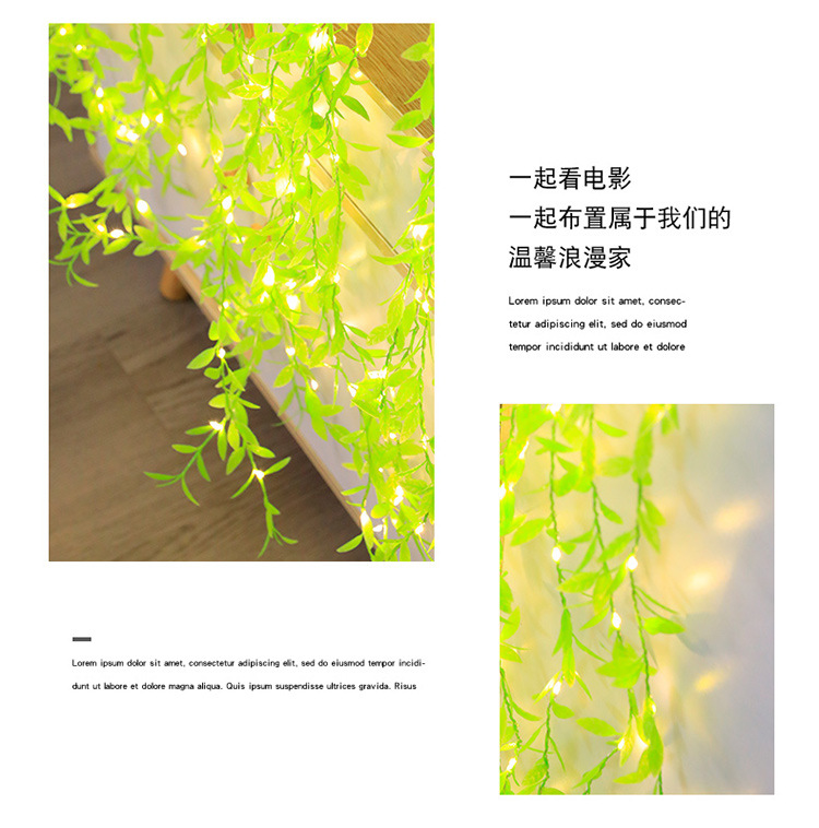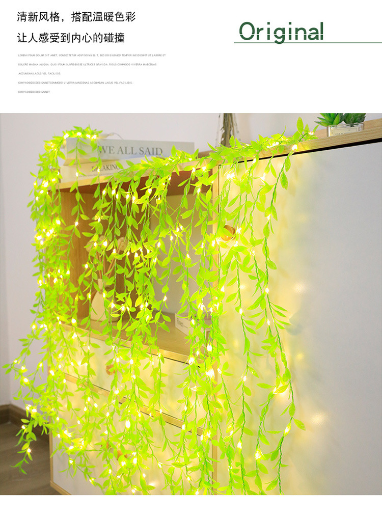 Lámpara de alambre de cobre de hoja verde de ratán Lámpara solar al aire libre Lámpara de decoración de jardín al aire libre Lámpara de rama Lámpara de planta de habitación