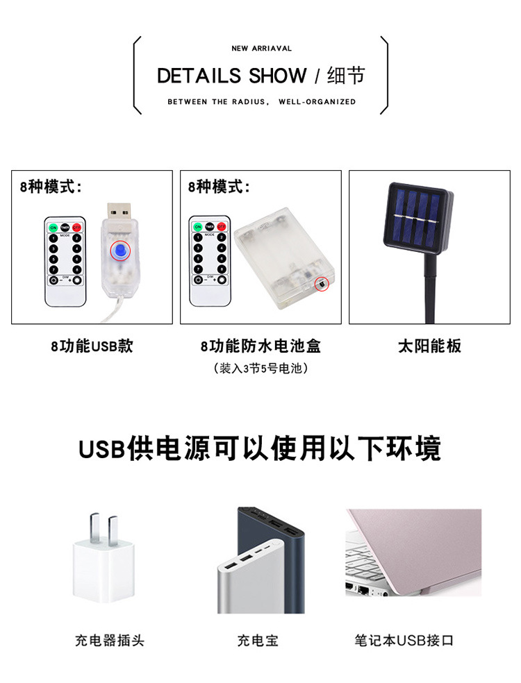 | Poder | Tres cajas de batería con flash sin batería,Energía solar,Control remoto 8 funciones USB,Caja de batería de 8 funciones de control remoto |