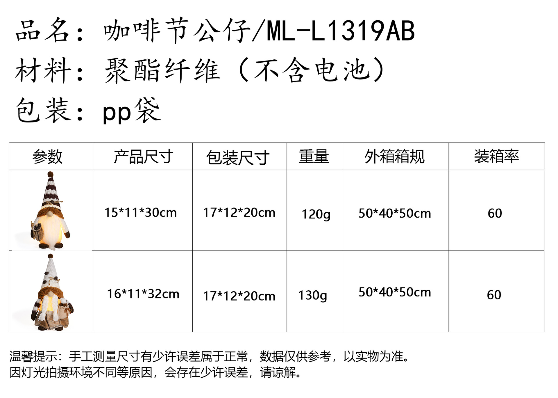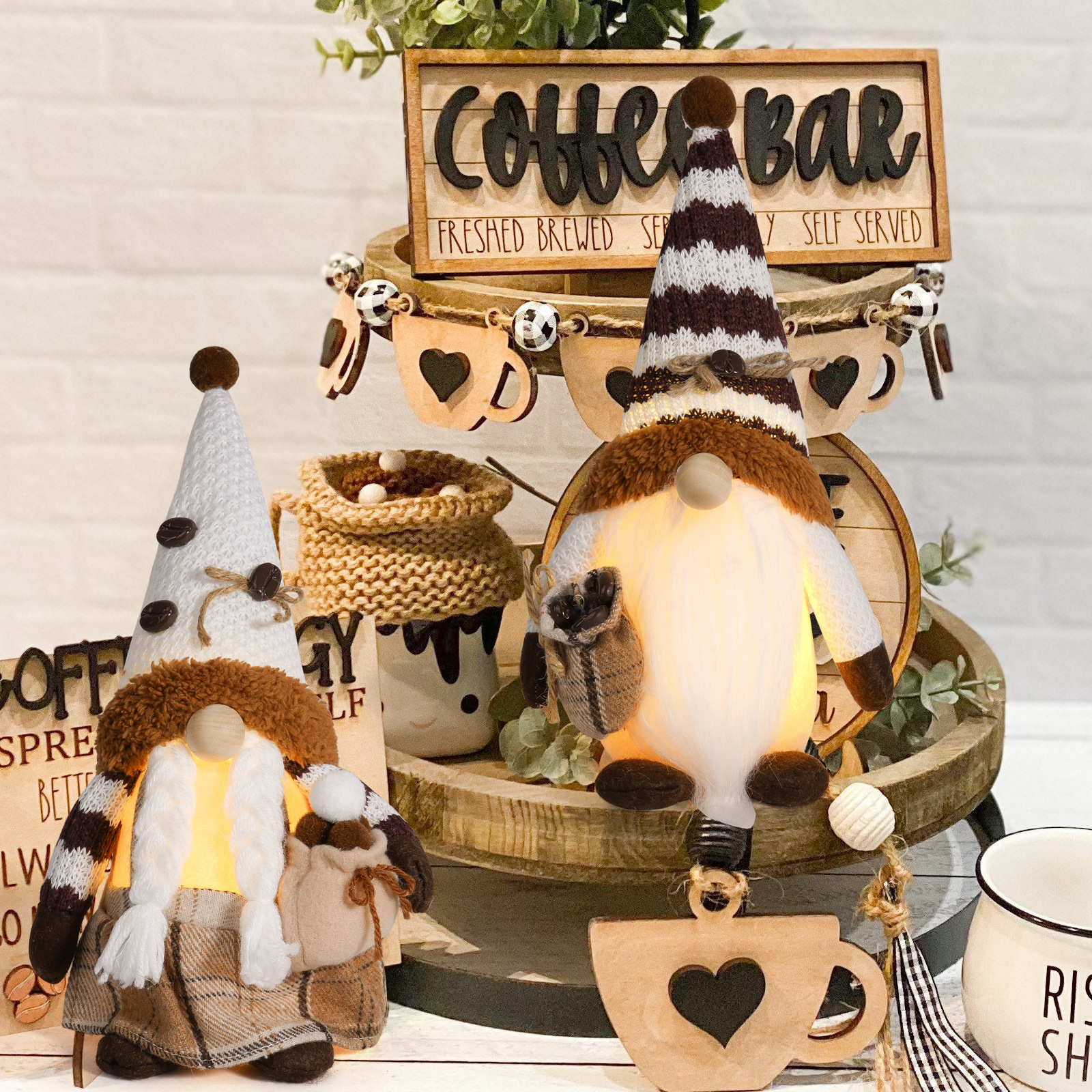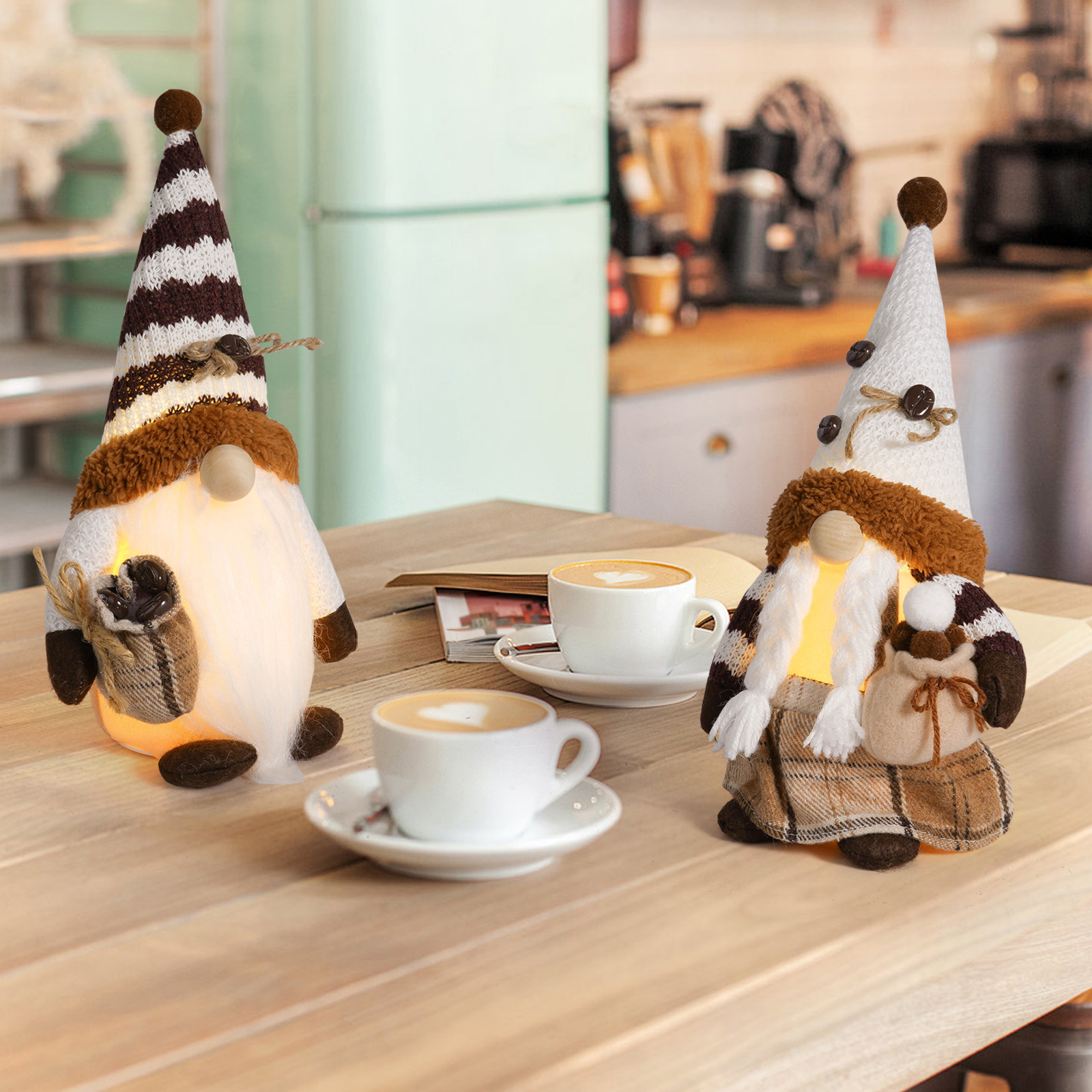 Café transfronterizo luminoso muñeca sin cara linda bolsa de café de punto con lámpara enano Rudolph decoración