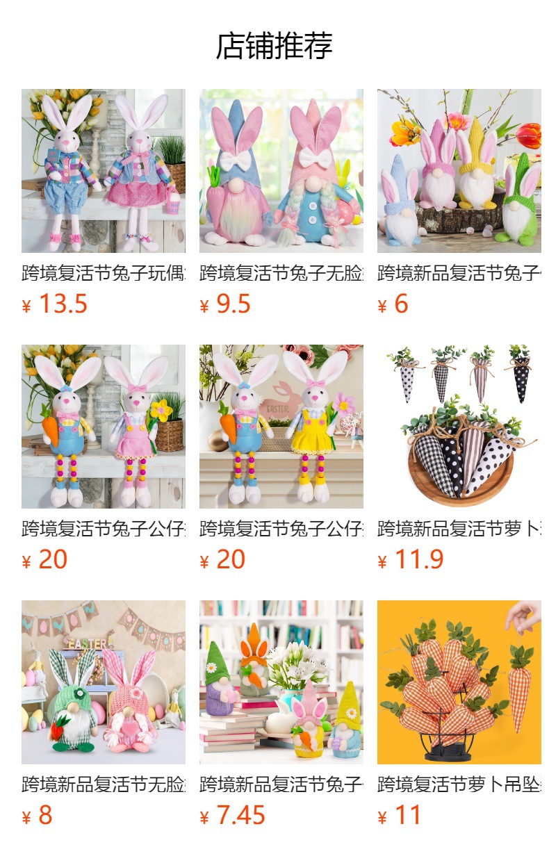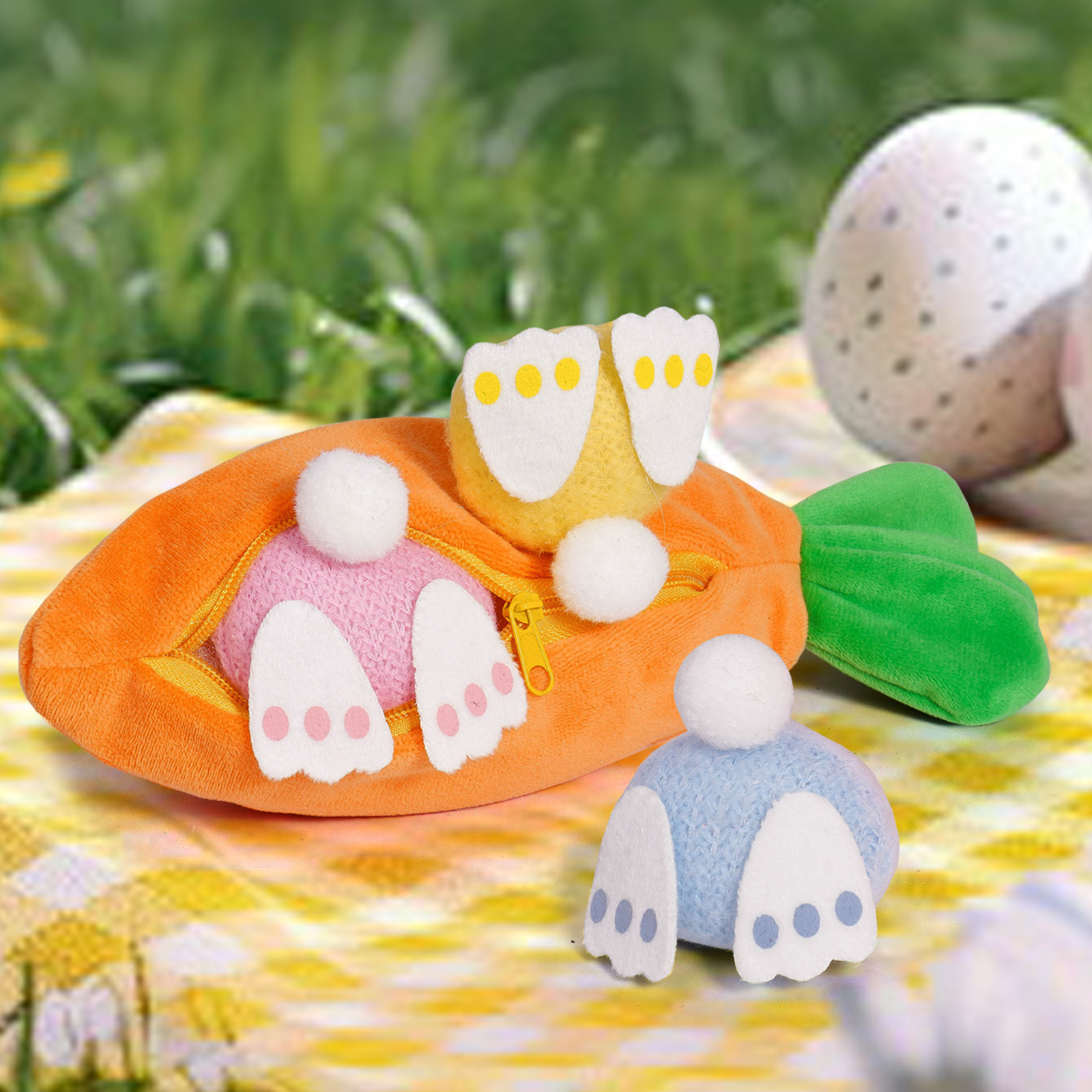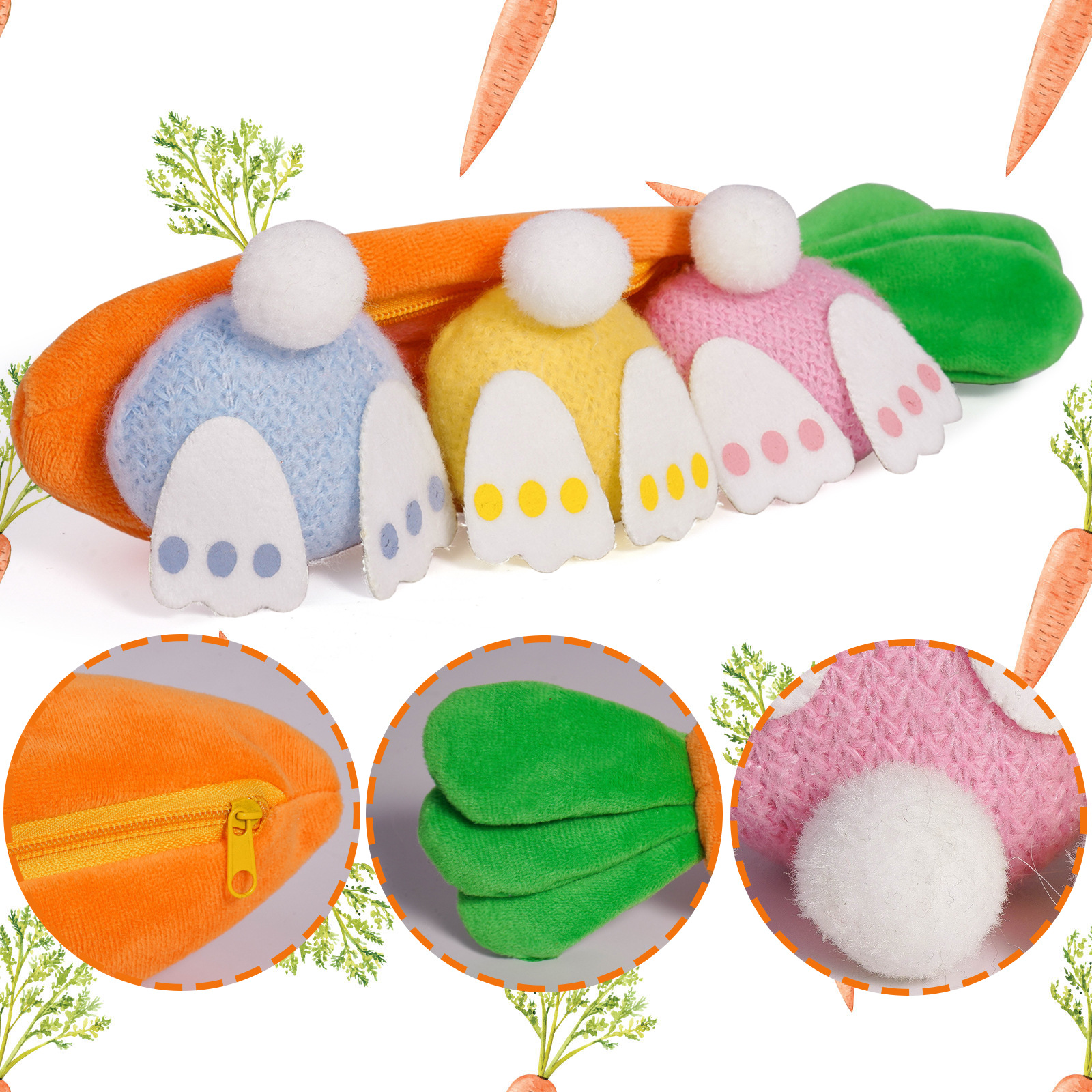 Pascua transfronteriza zipper creativa zanahoria conejo muñeca trasero decoraciones festivas decoraciones de mesa
