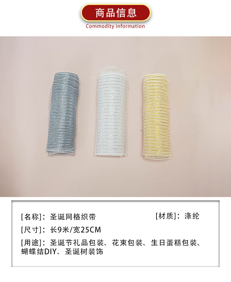 Cinta de malla de Navidad 25cm de borde ancho cinta hornear pastel Navidad árbol decoración cinta regalo dorado borde cinta