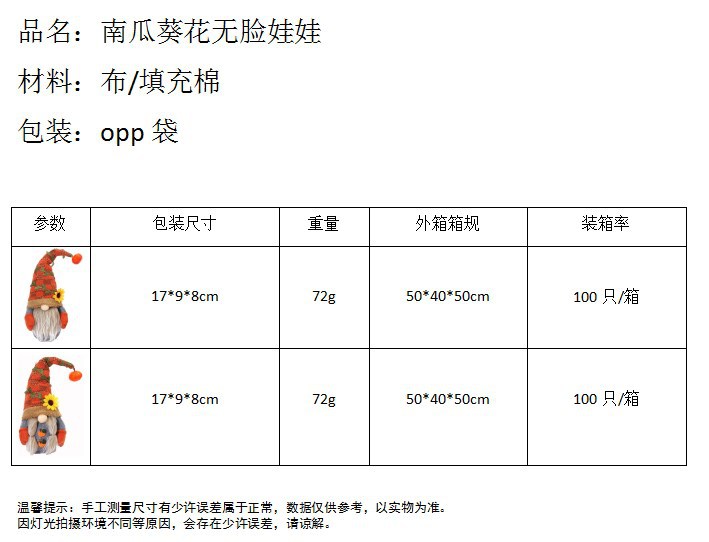 Transfronterizo Nuevo Festival de la cosecha de Acción de Gracias calabaza girasol muñeca sin rostro enano Rudolf muñeca decoración adornos