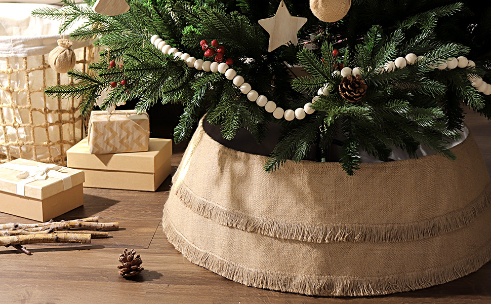 Navidad transfronteriza algodón lino falda de árbol abrazadera ajustable decoración del árbol de Navidad decoración del árbol de Navidad