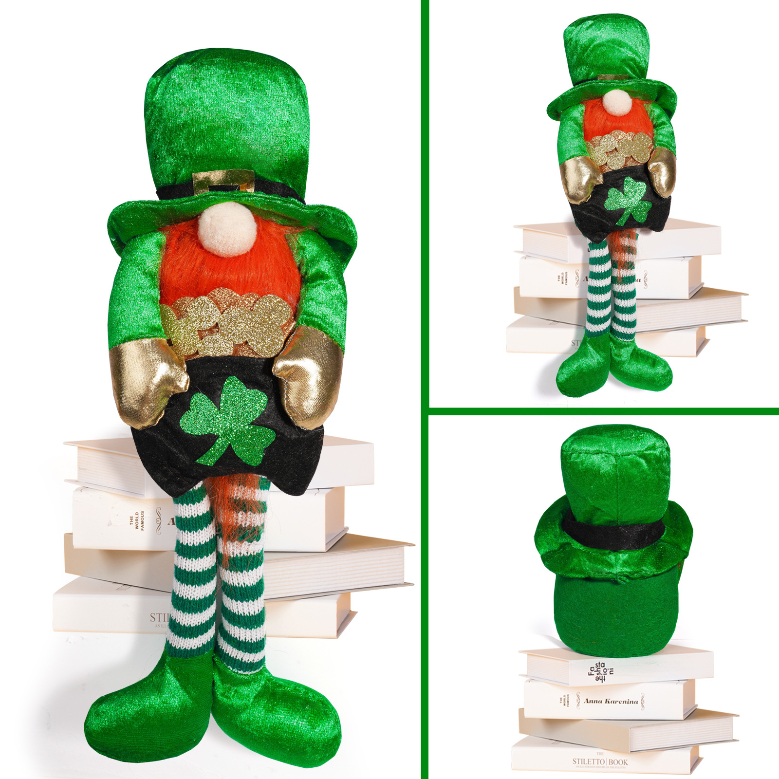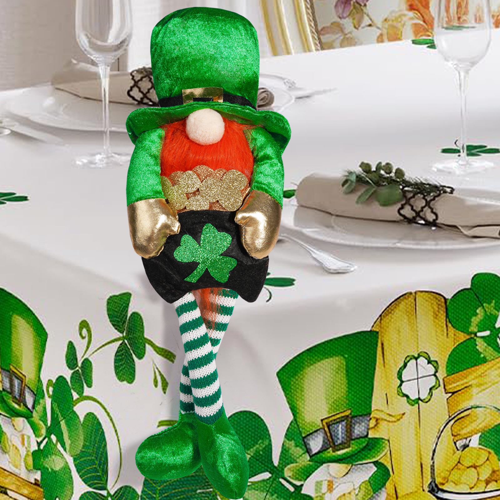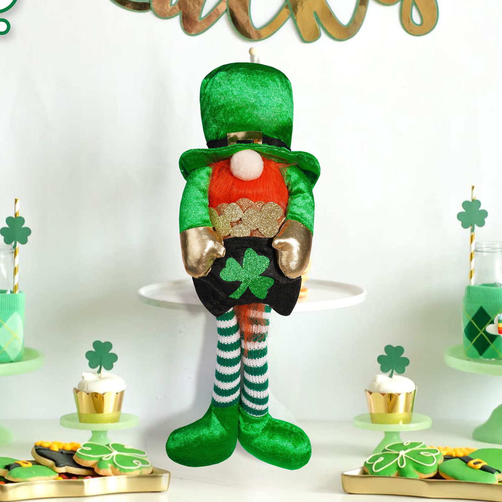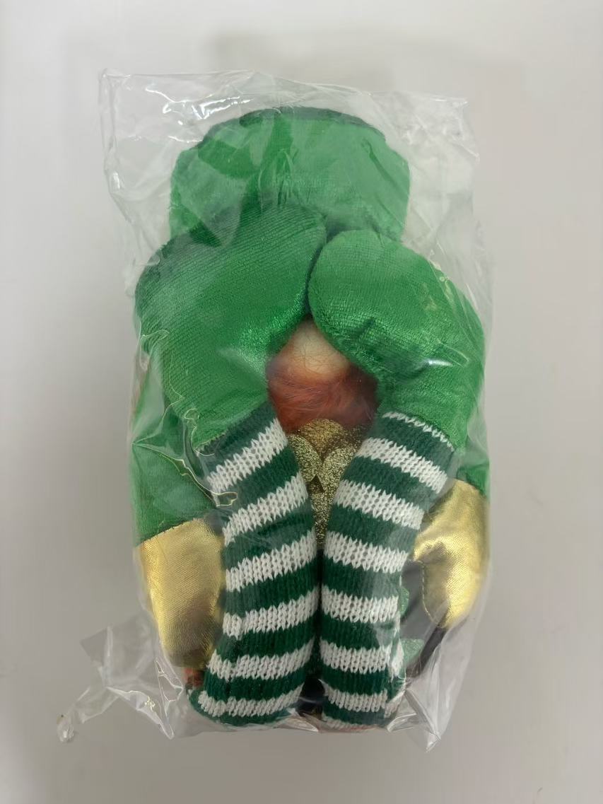 Transfronterizo irlandés Día de Patricio decoración muñeca de piernas largas verde arco iris enano hoja verde decoración Rudolph