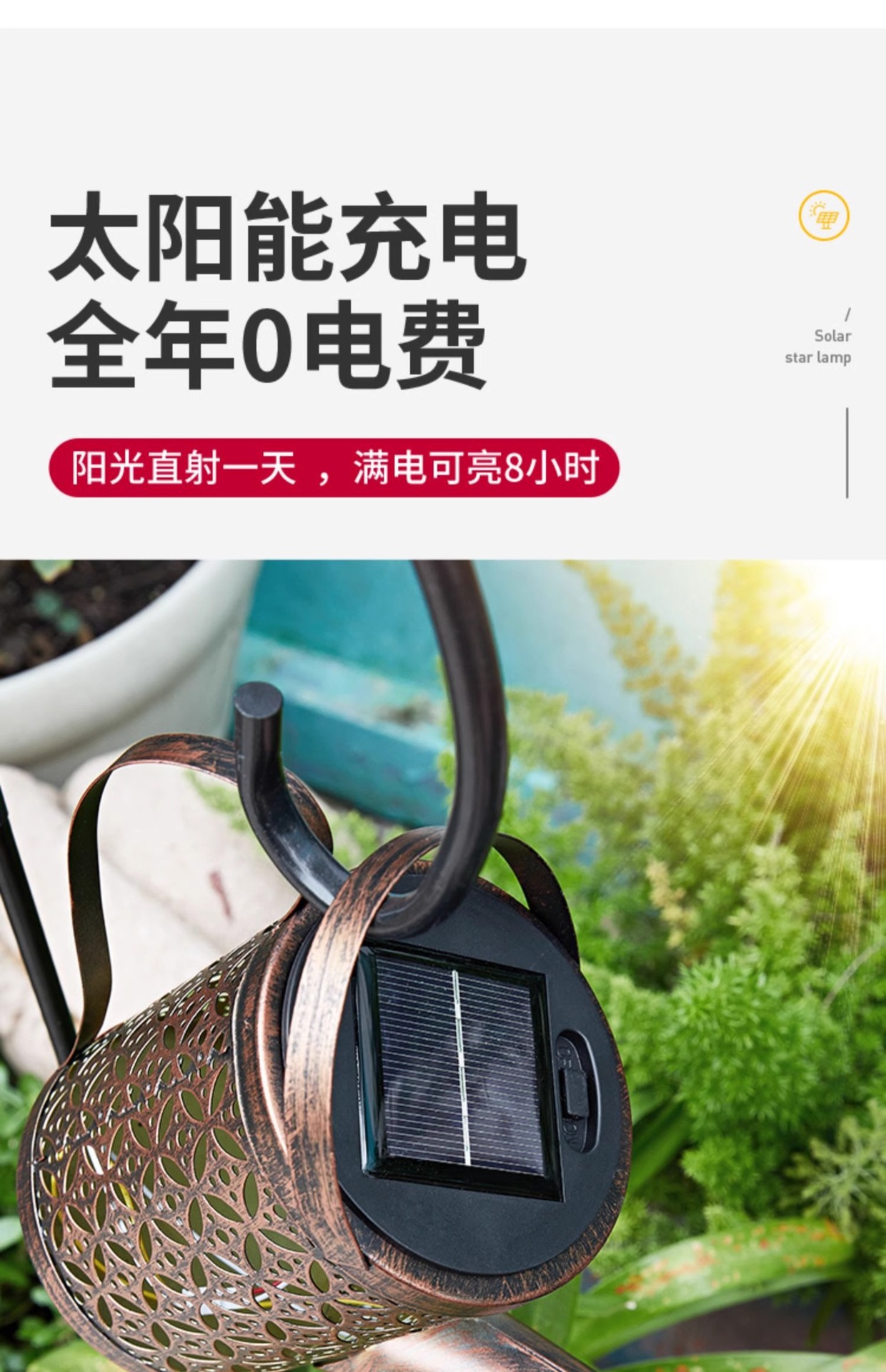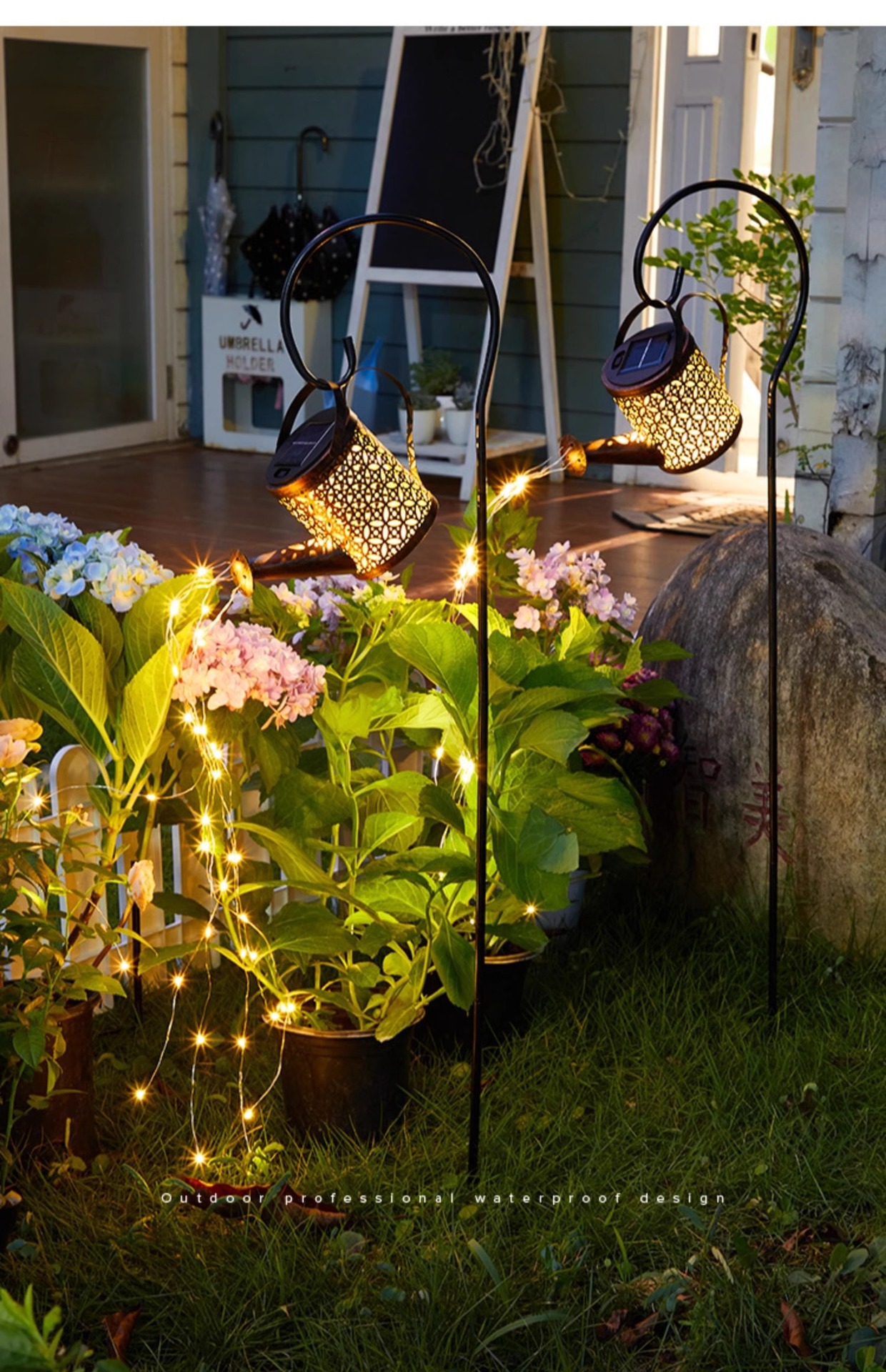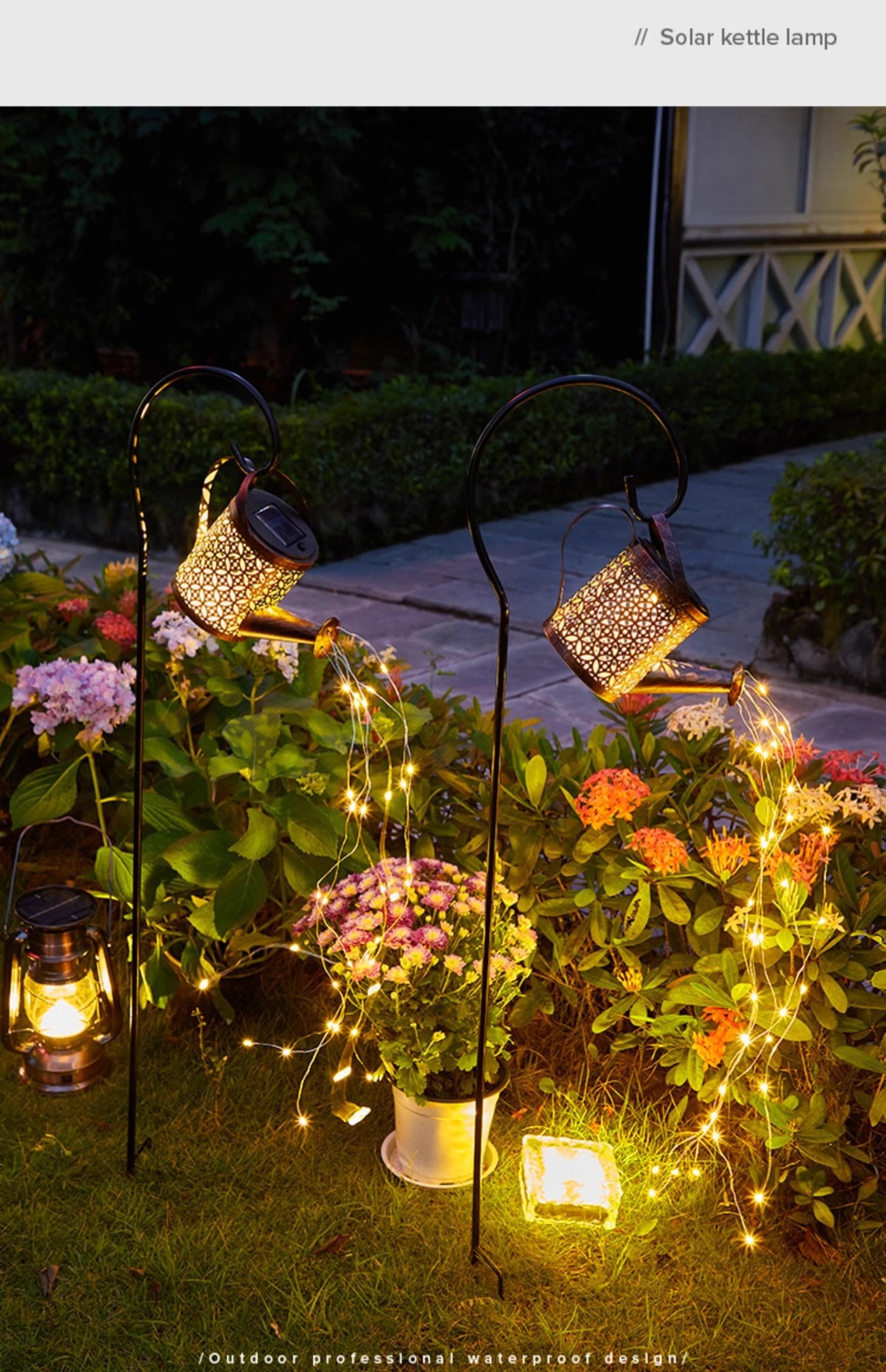 Lámpara de hervidor solar impermeable al aire libre, ambiente de decoración de jardín, luz de césped, diseño de paisaje de patio de granja, luz colgante