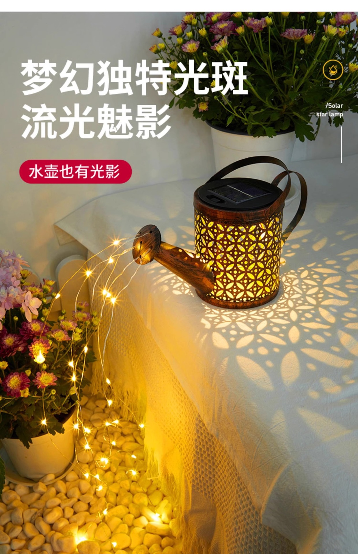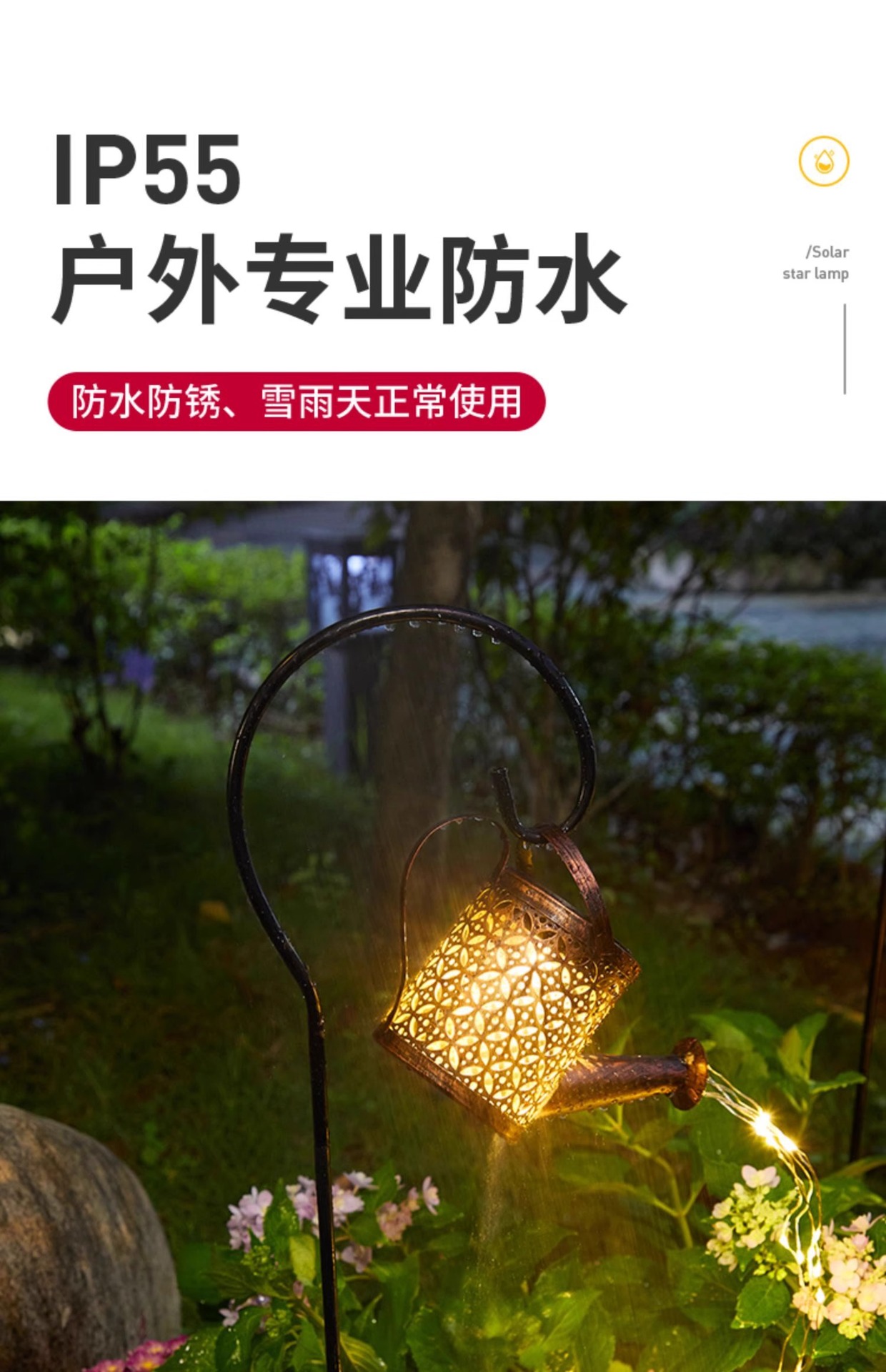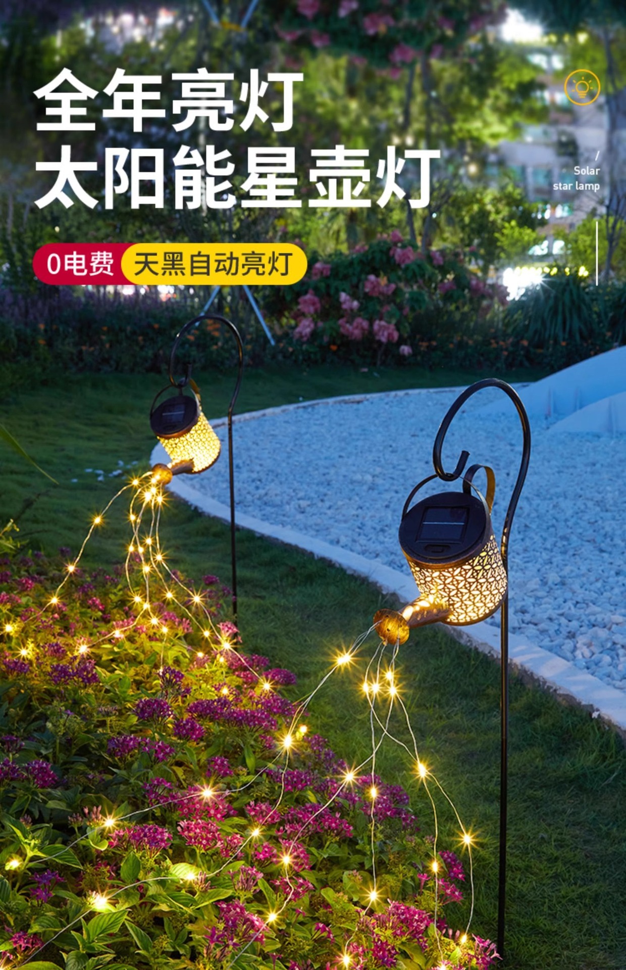 Lámpara de hervidor solar impermeable al aire libre, ambiente de decoración de jardín, luz de césped, diseño de paisaje de patio de granja, luz colgante
