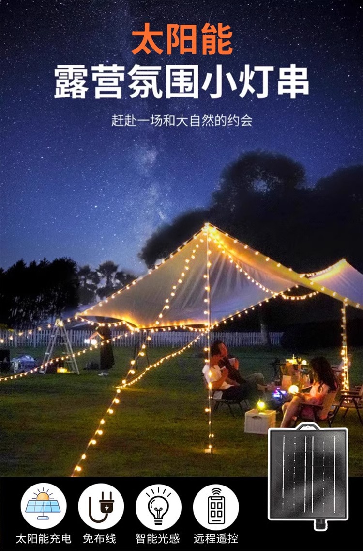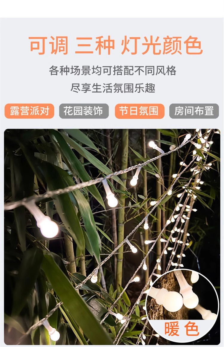 Lámpara de palomitas de maíz solar, luces de colores impermeables al aire libre, luces intermitentes, gypsophila, carpa para acampar, luces decorativas que cambian de color, luces de cadena