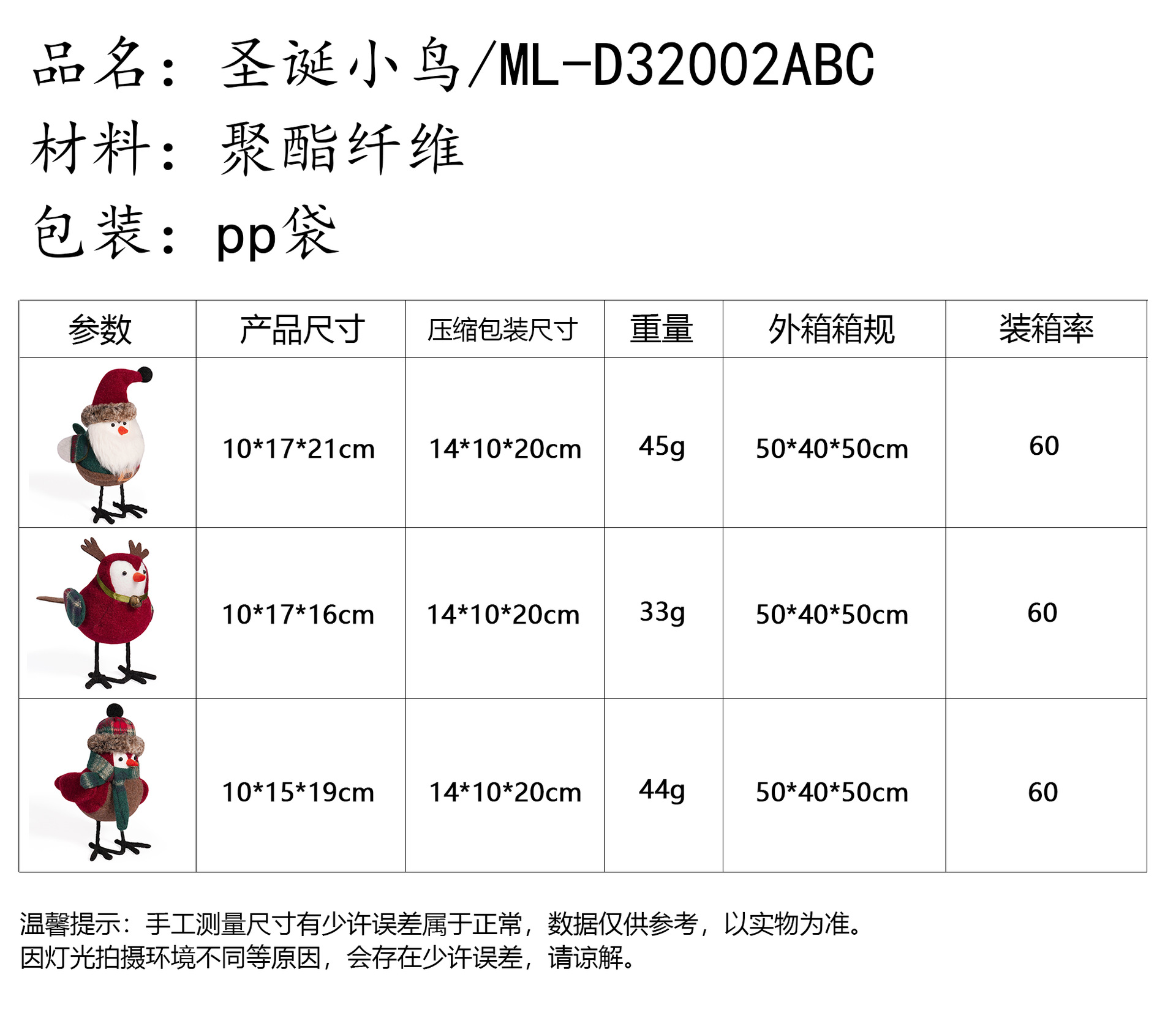 Navidad transfronteriza adorable pájaros creativos Santa pájaros festivos decoraciones de escritorio pájaros de pie