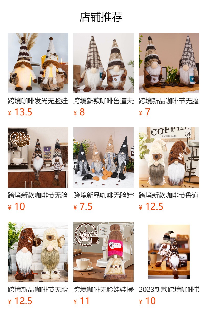Café transfronterizo luminoso muñeca sin cara linda bolsa de café de punto con luces goblin ornamentos decorativos