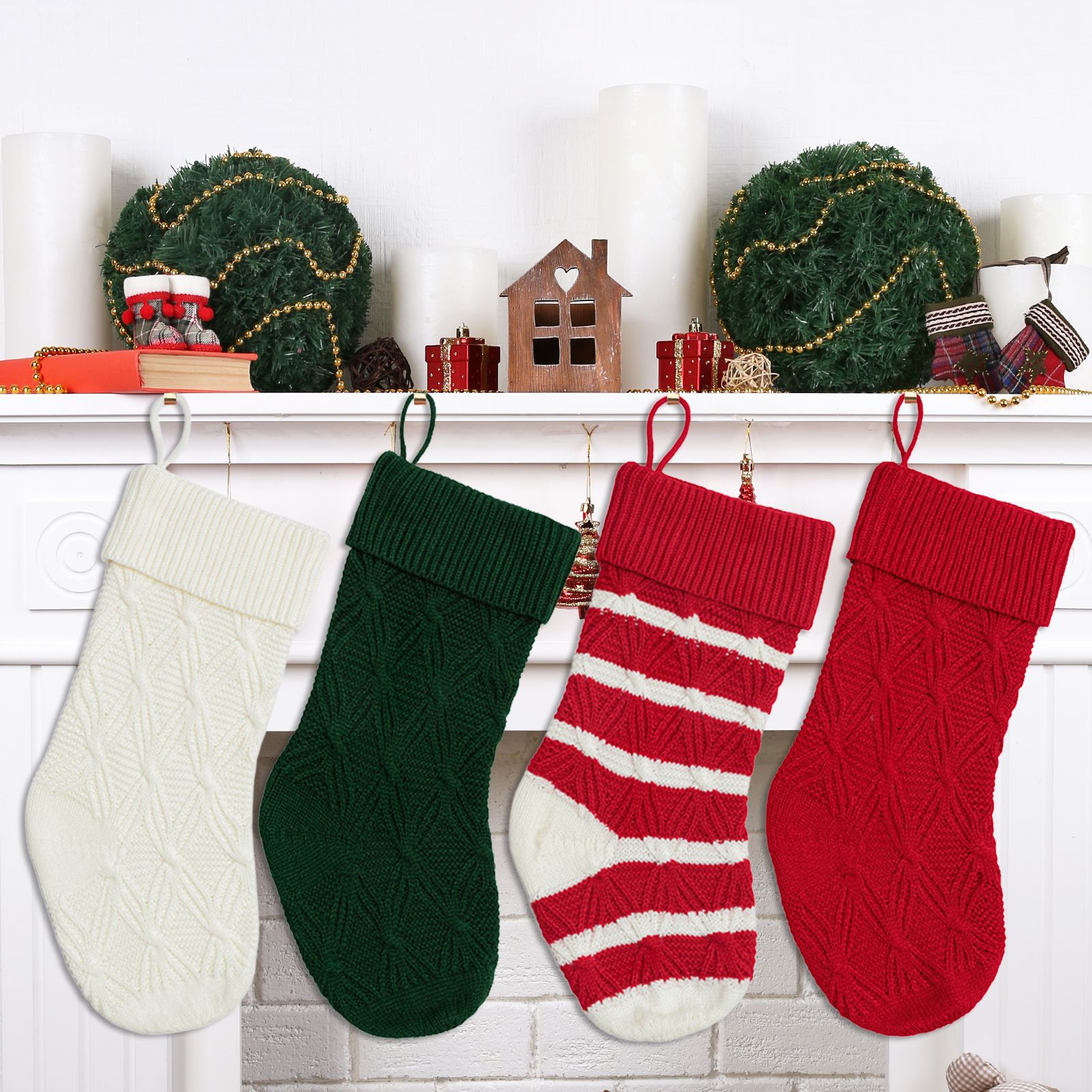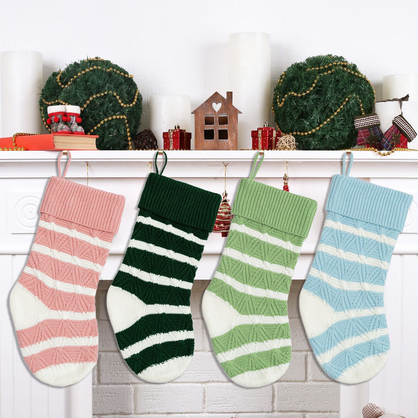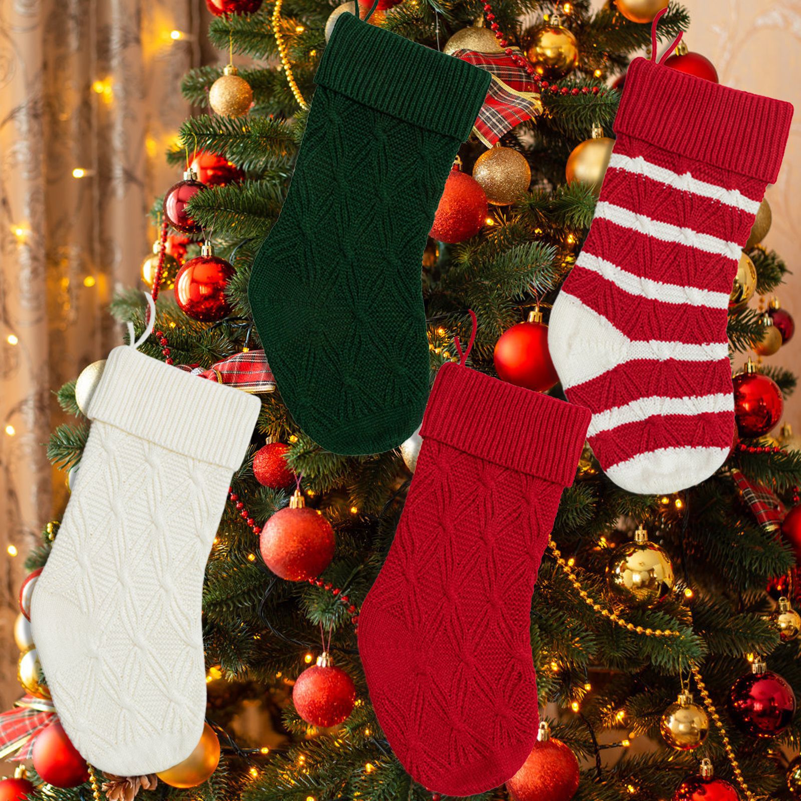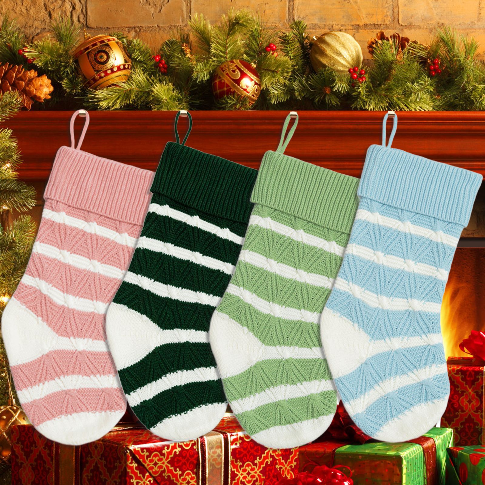 Navidad transfronteriza de punto a rayas calcetines navideñas decoración navideña colgante de árbol de navidad lindos regalos creativos bolsas de regalo