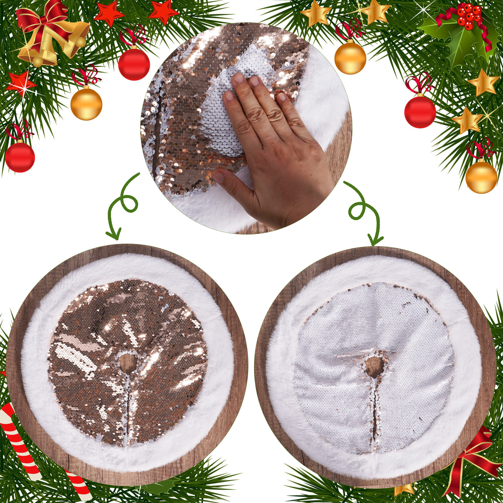 Navidad transfronteriza pequeña falda de árbol de perlas decoración de dos colores conmutación creativa delantal de árbol de Navidad una falda de dos colores