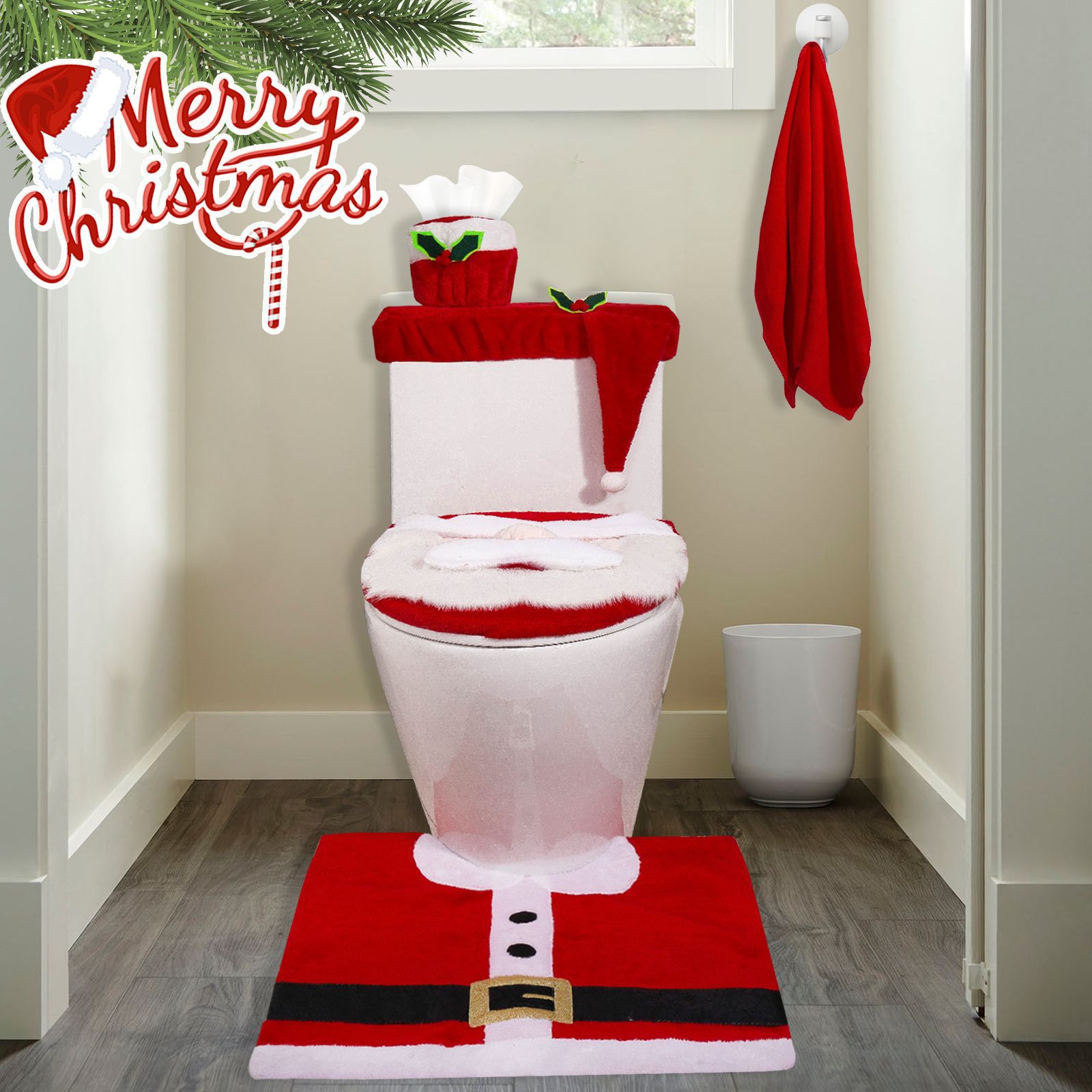 Set de inodoro de Navidad 5 piezas Set de decoración de baño de Navidad Decoración de Navidad Santa cubre inodoro