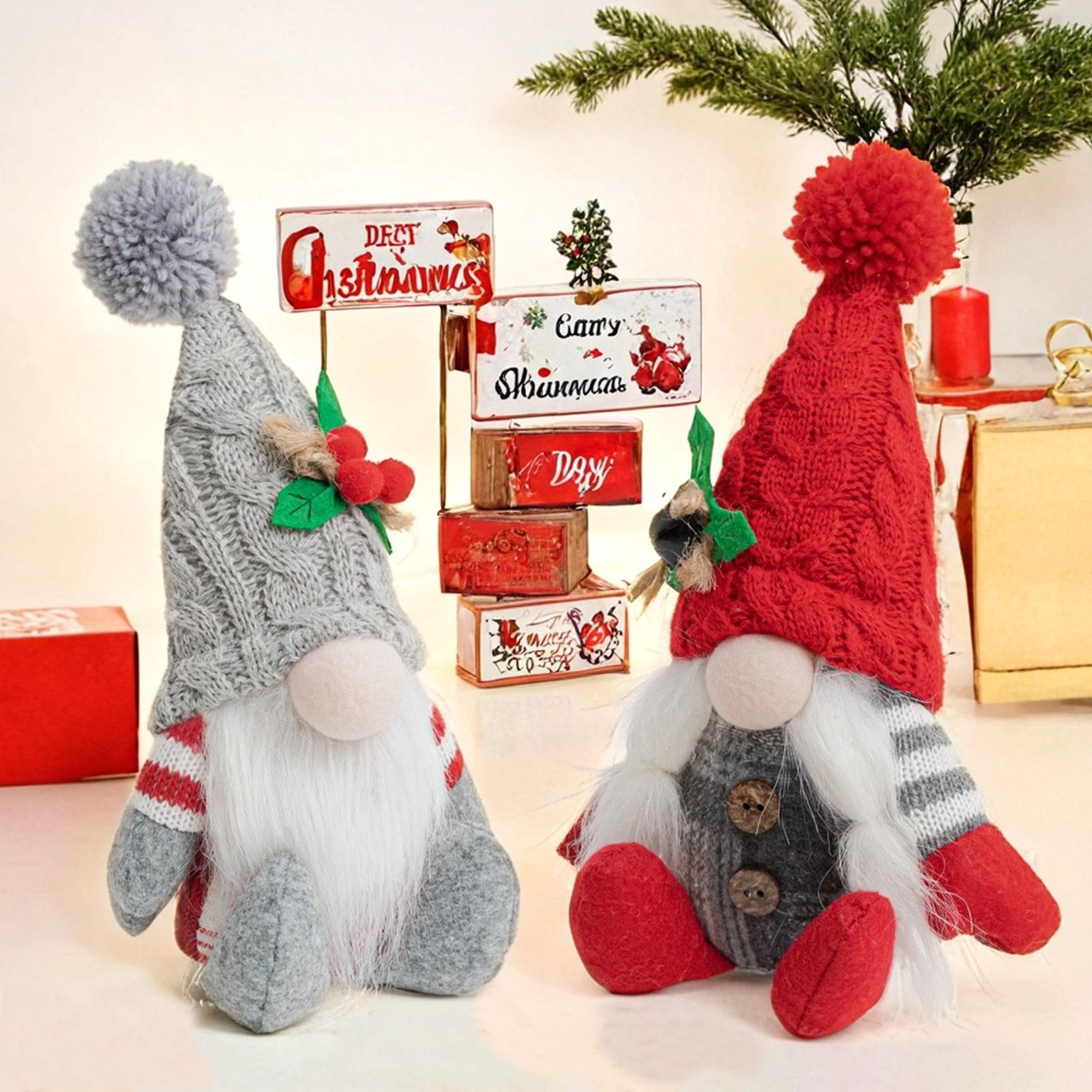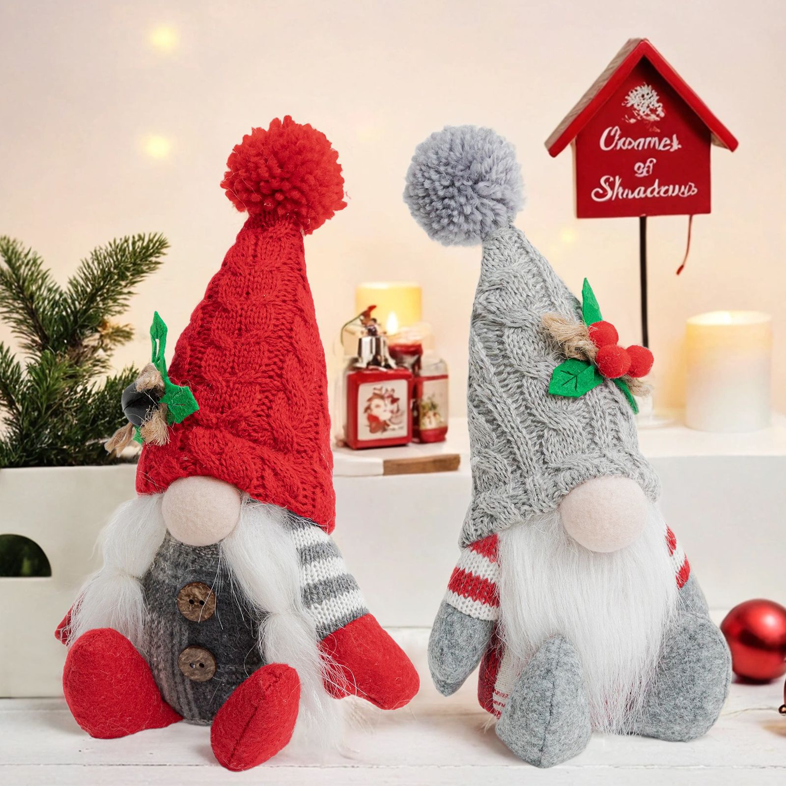| Colores | Gorro puntiagudo de punto de alta gama sentado enano gris,Gorra puntiaguda de punto de alta gama sentado rojo enano |