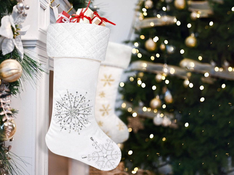 Navidad transfronteriza de cuero blanco calcetines de Navidad plateados sequillas calcetines de Navidad colgante decoración del hogar navideño