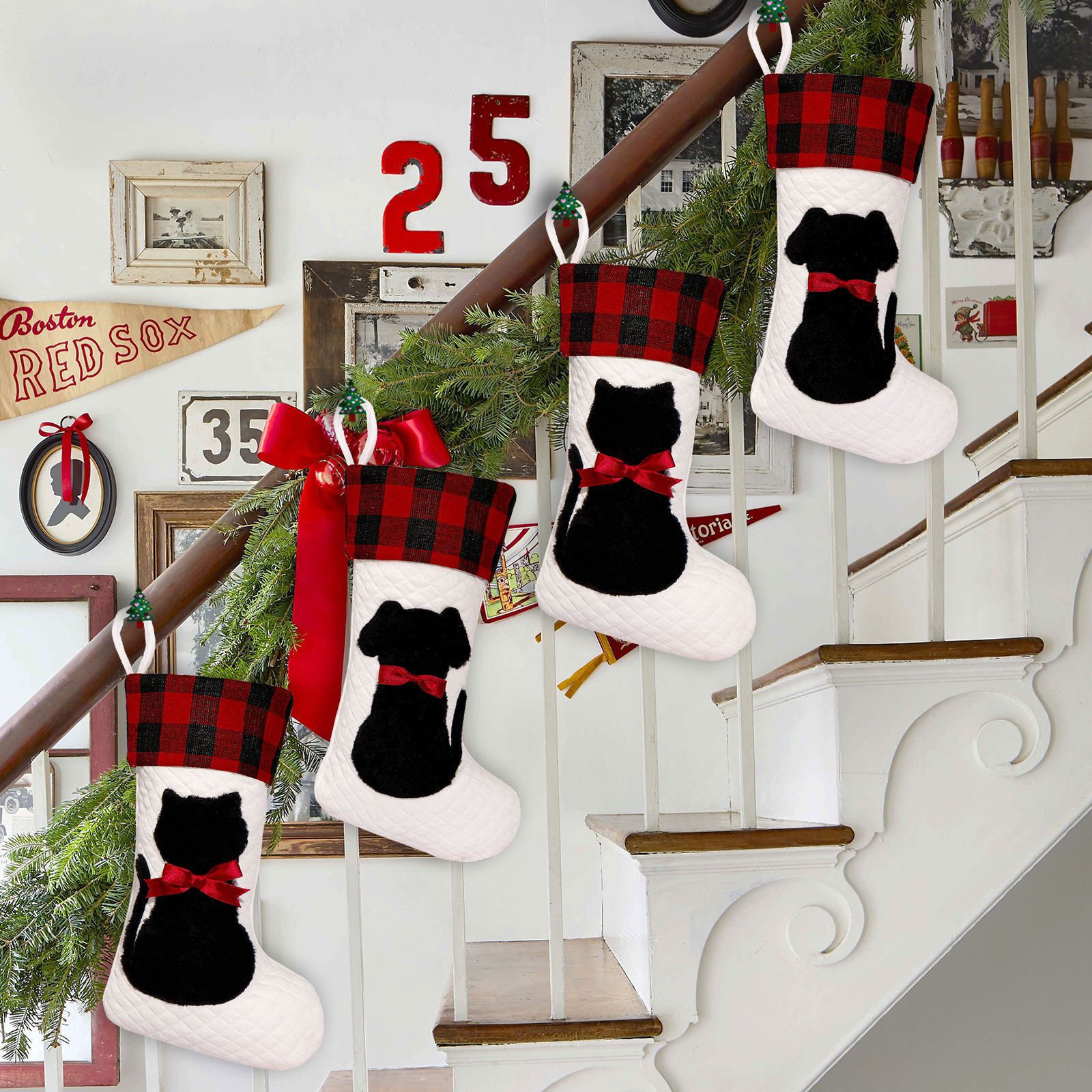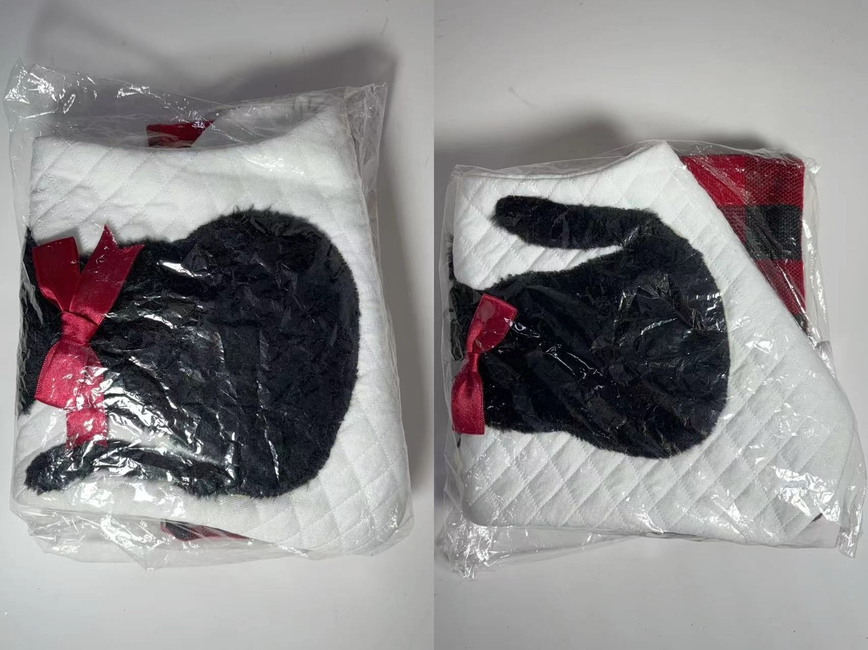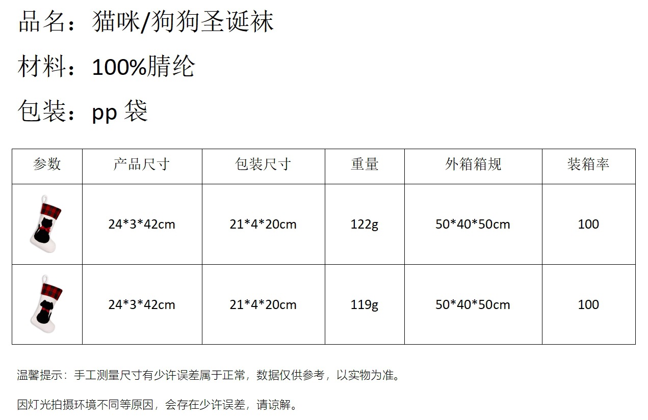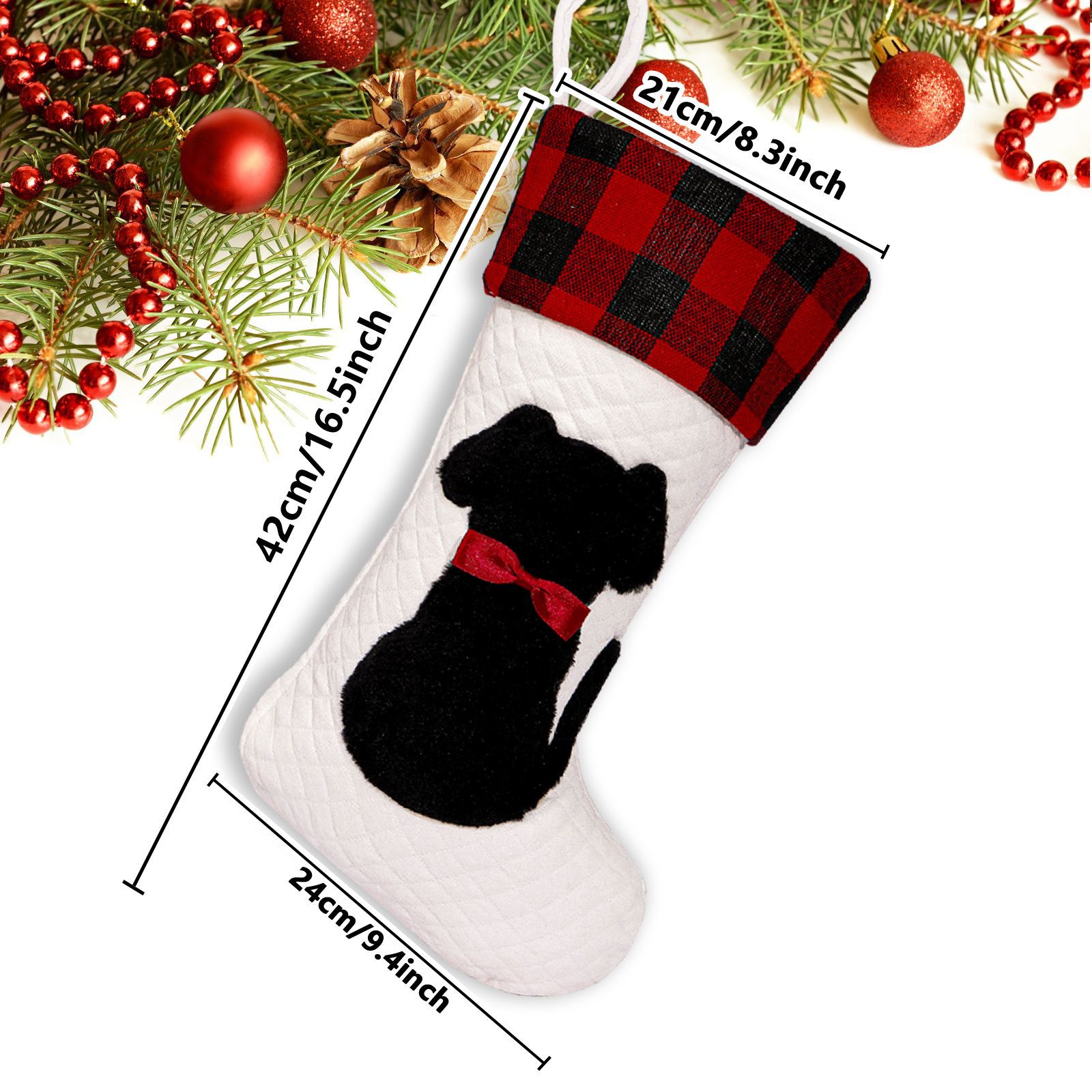 Mascotas transfronterizas calcetines de Navidad rojo y negro cuadrado perro gato bolsas de regalos de Navidad colgantes de árbol de Navidad atmósfera de vacaciones bolsas de regalos