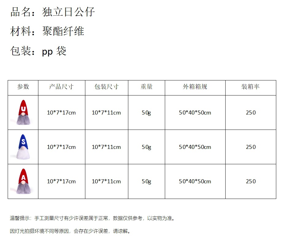 Día de la Independencia transfronteriza muñeca sin cara encantadora muñeca enana decoración Rudolph decoraciones festivas