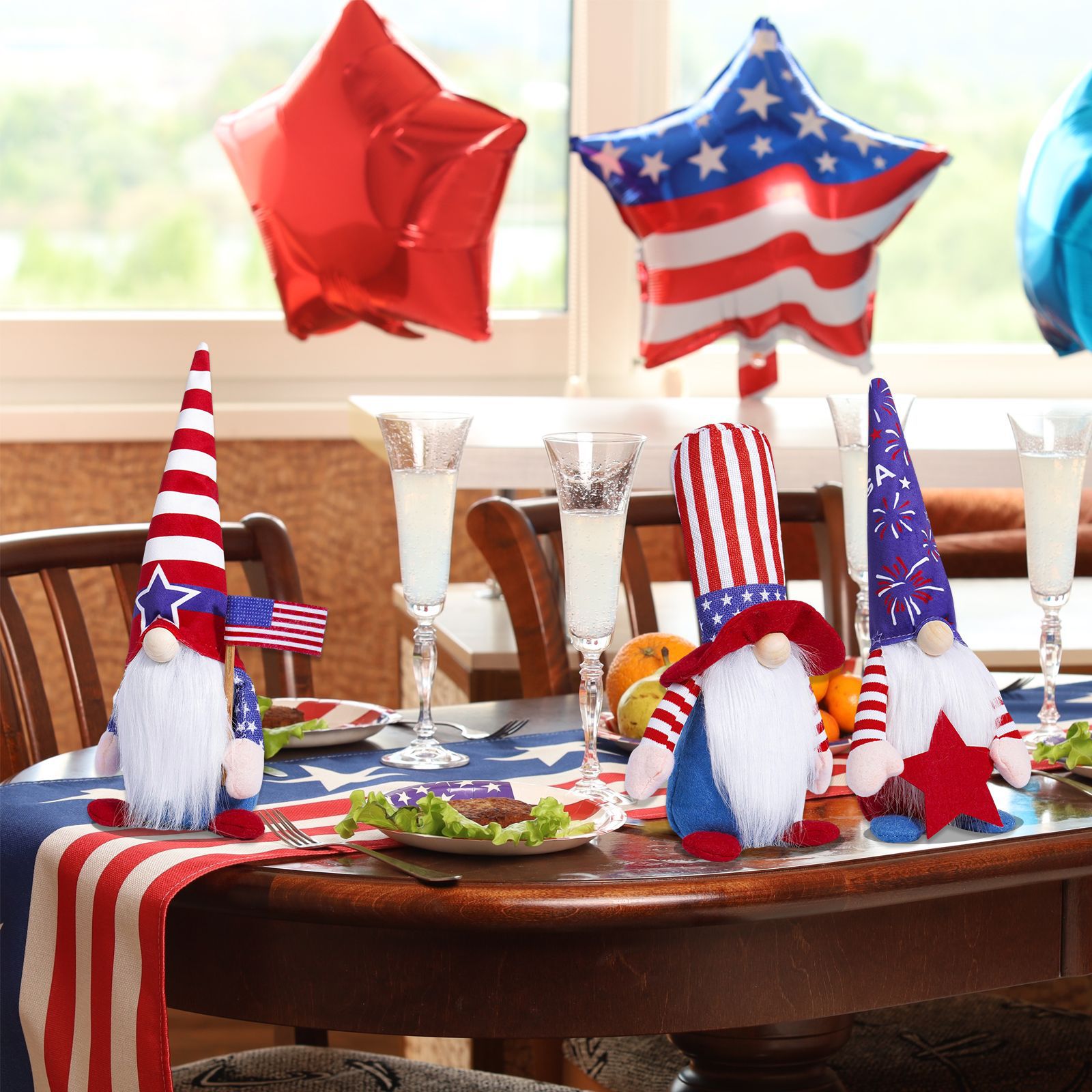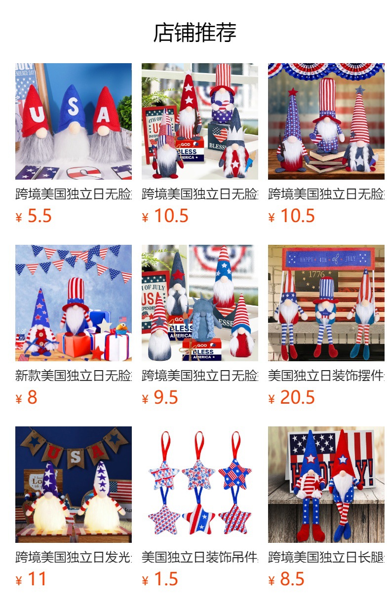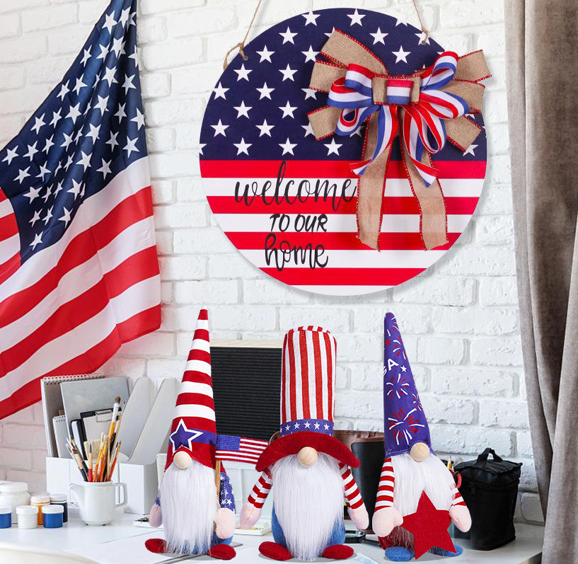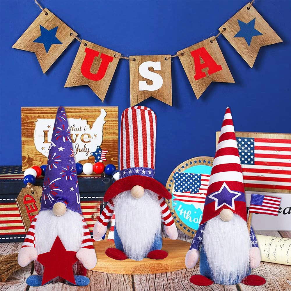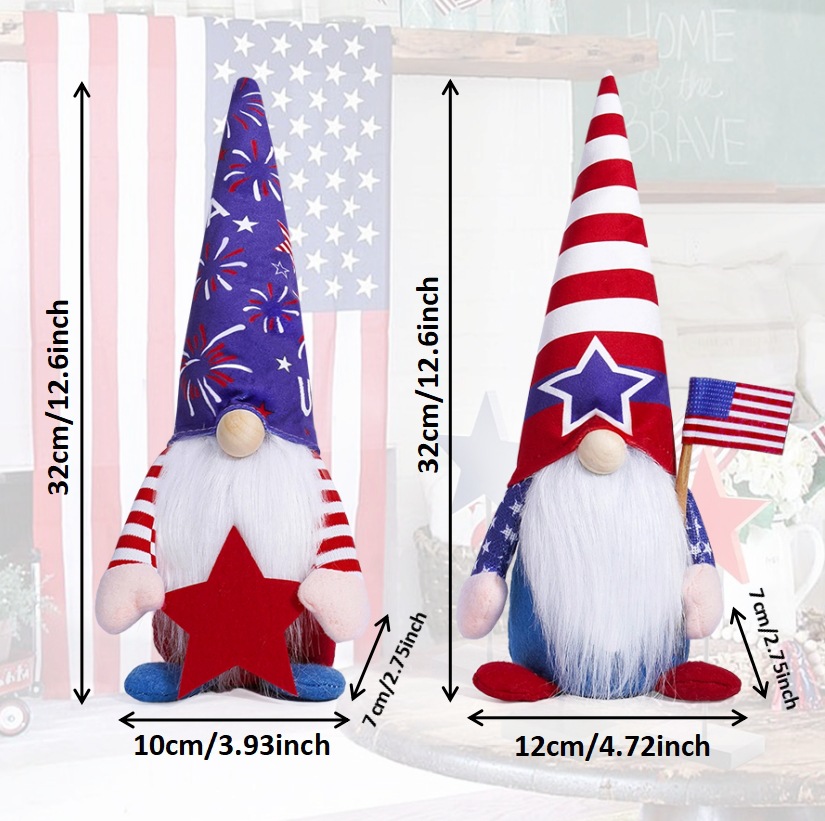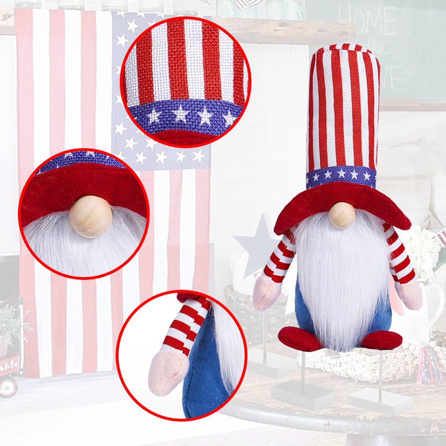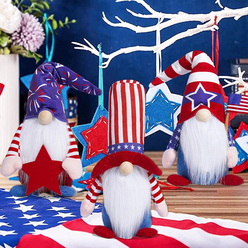 Día de la independencia transfronteriza muñeca sin cara adornos encantadores enanos muñecas viejas estrellas Rudolph adornos