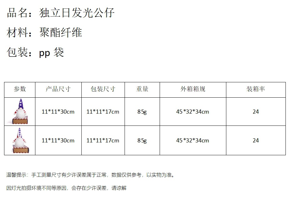 Día de la Independencia transfronteriza muñeca sin rostro encantadora muñeca Rudolph luminosa enana decoración para el anciano