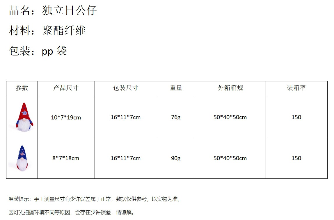 Día de la Independencia transfronteriza muñeca sin cara decoraciones enanos viejos adorables muñecas decoraciones de atmósfera de vacaciones