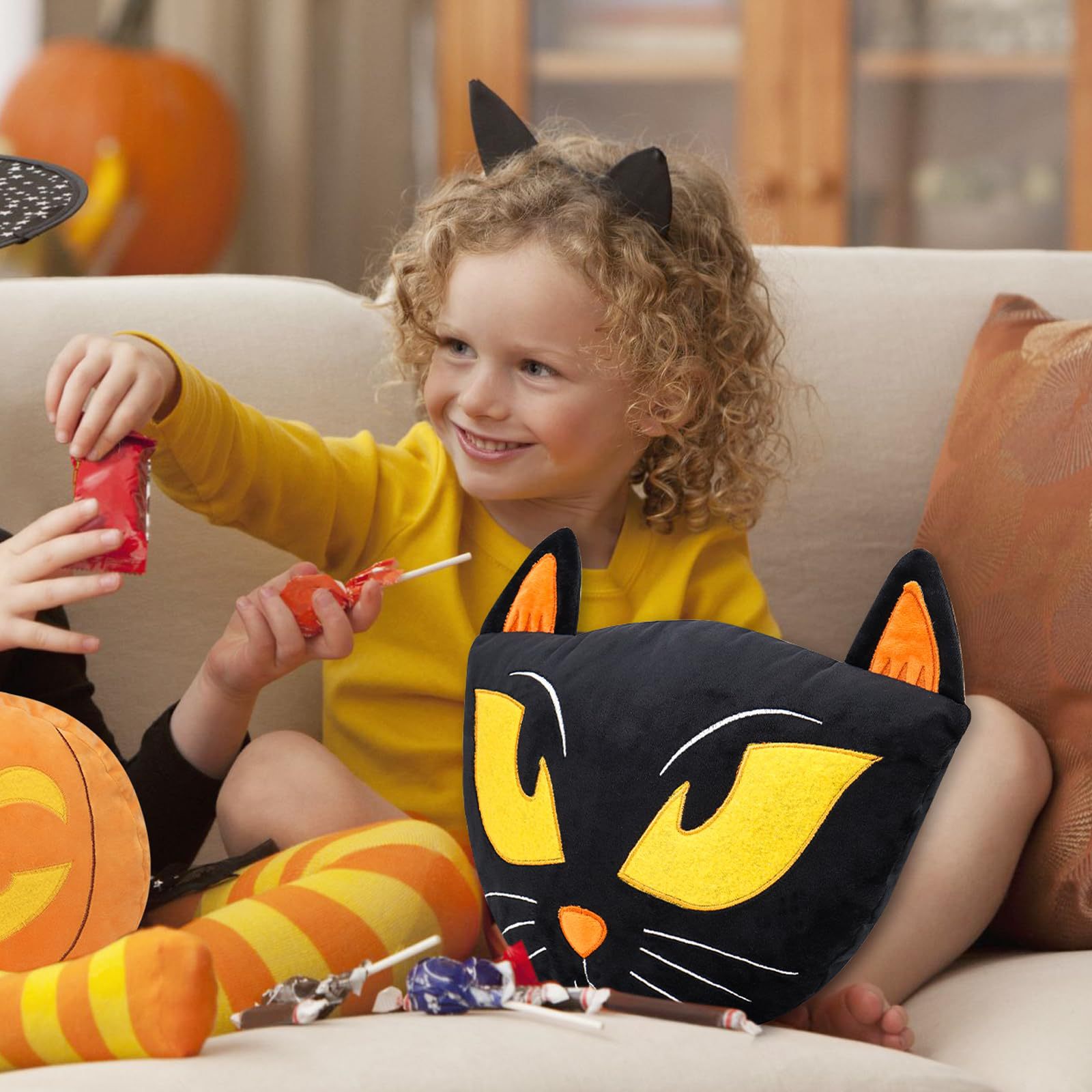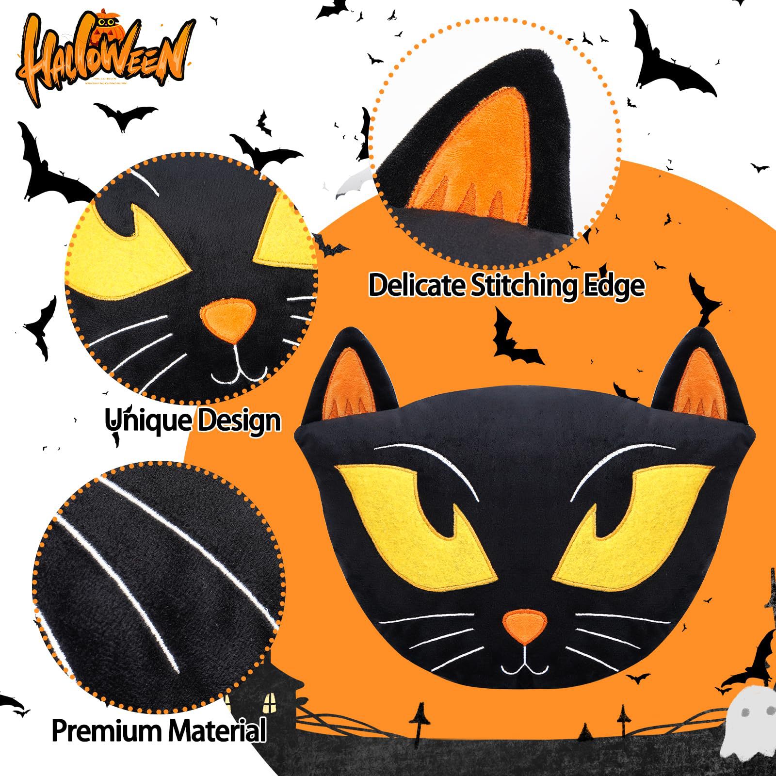Nuevos productos transfronterizos almohada de Halloween, búho negro con almohada de núcleo, almohada de asiento creativa encantadora, almohada simple.