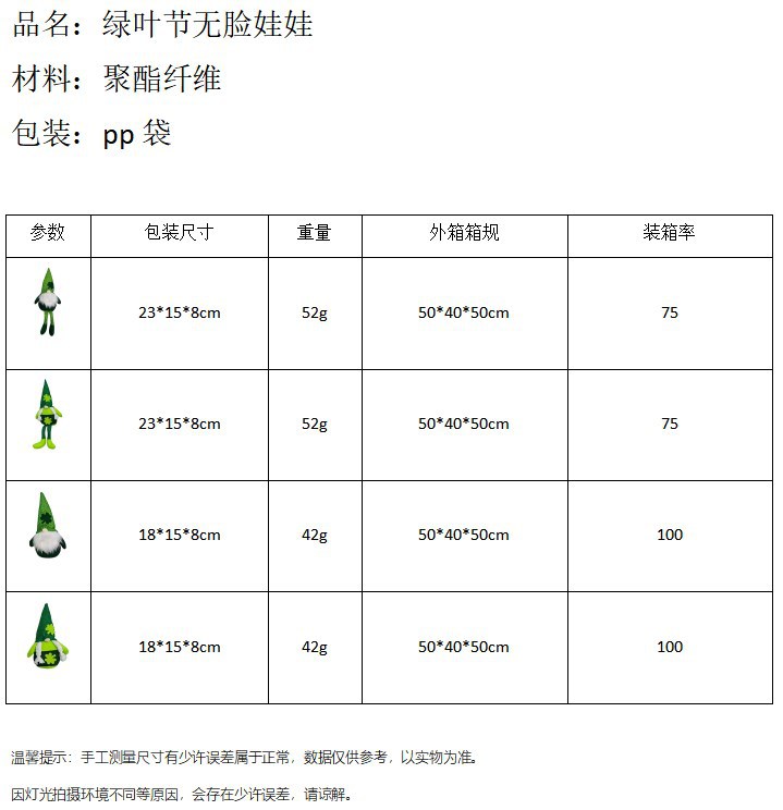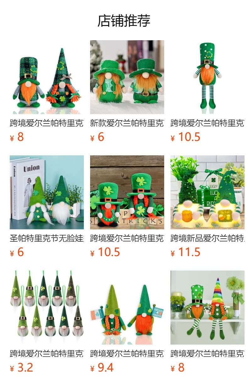 Nuevas decoraciones transfronterizas del Día de San Patricio Irish Festival muñeca sin rostro Green Leaf Festival Trébol adornos