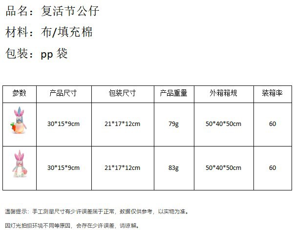 Cruz-frontera nueva muñeca de Pascua conejo luminoso de Pascua muñeca sin rostro rábano muñeca decoración de vacaciones