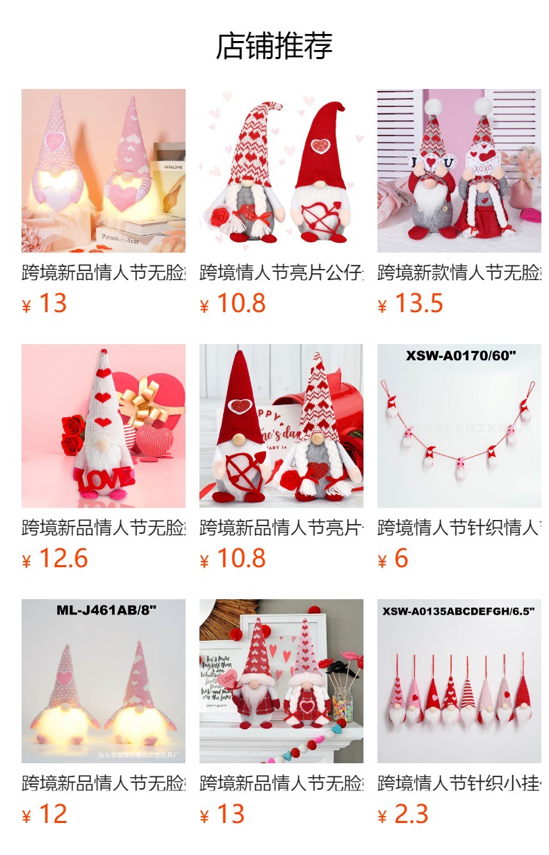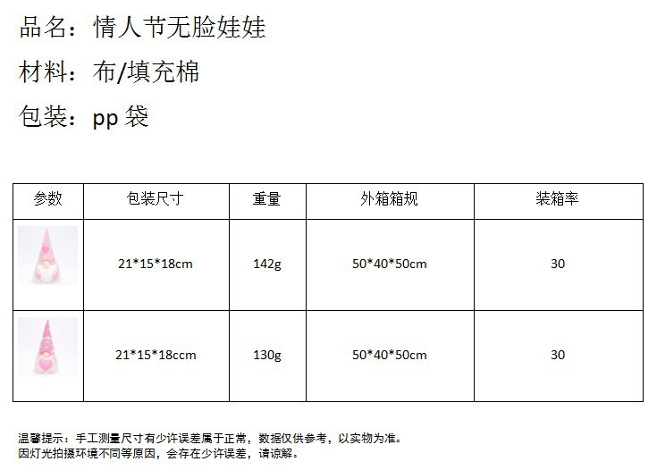 Transfronterizo nuevo Día de San Valentín muñeca sin rostro luminoso amor muñeca decoración Regalo De vacaciones decoraciones
