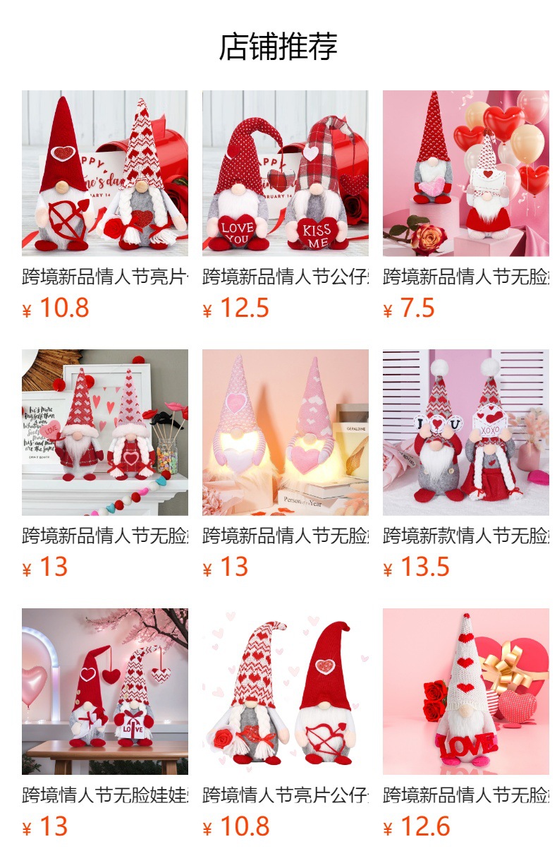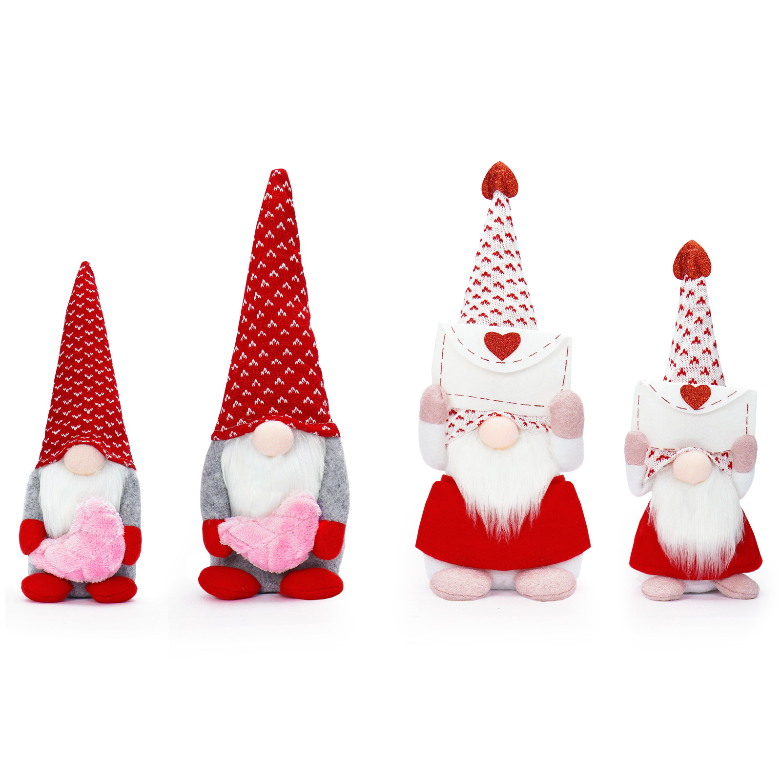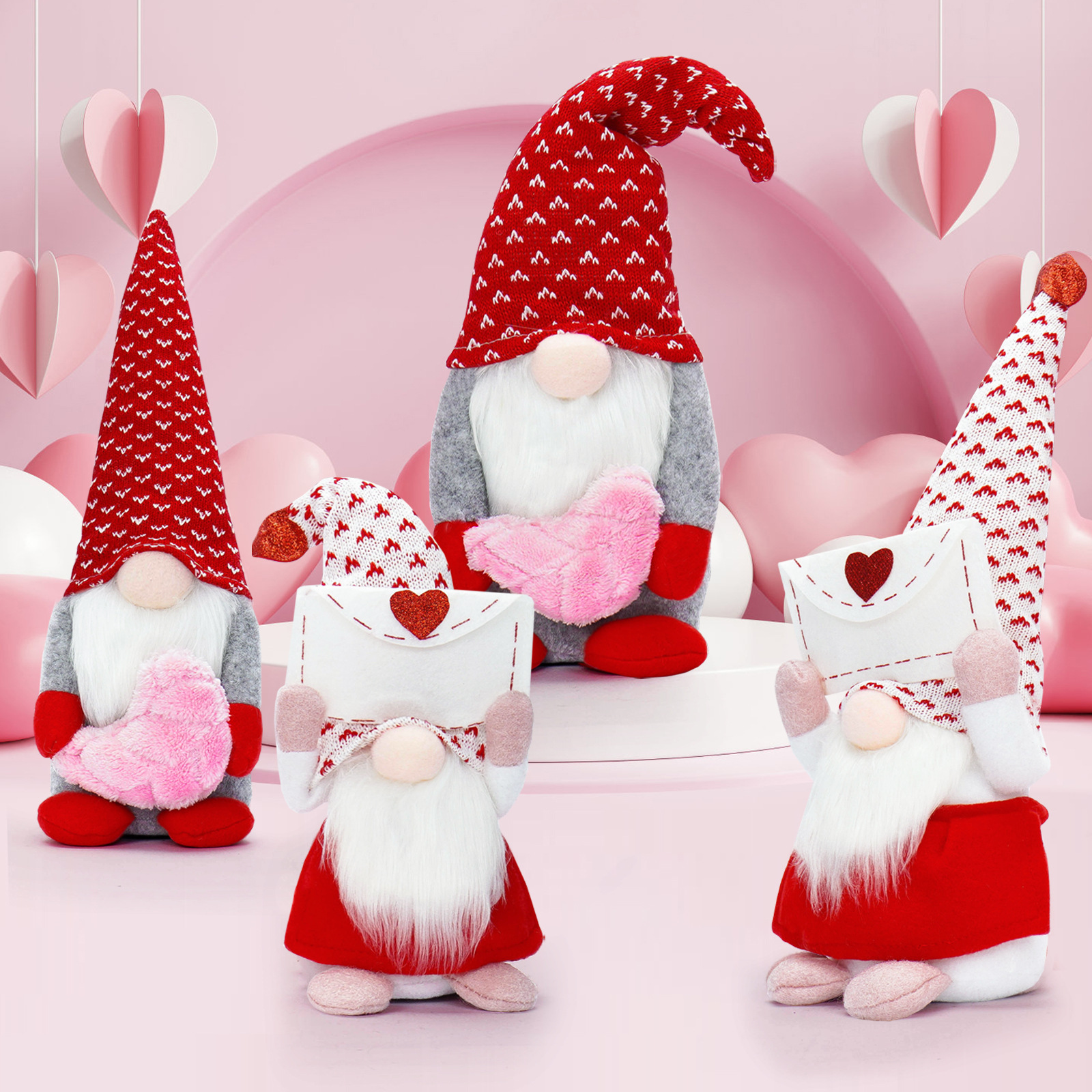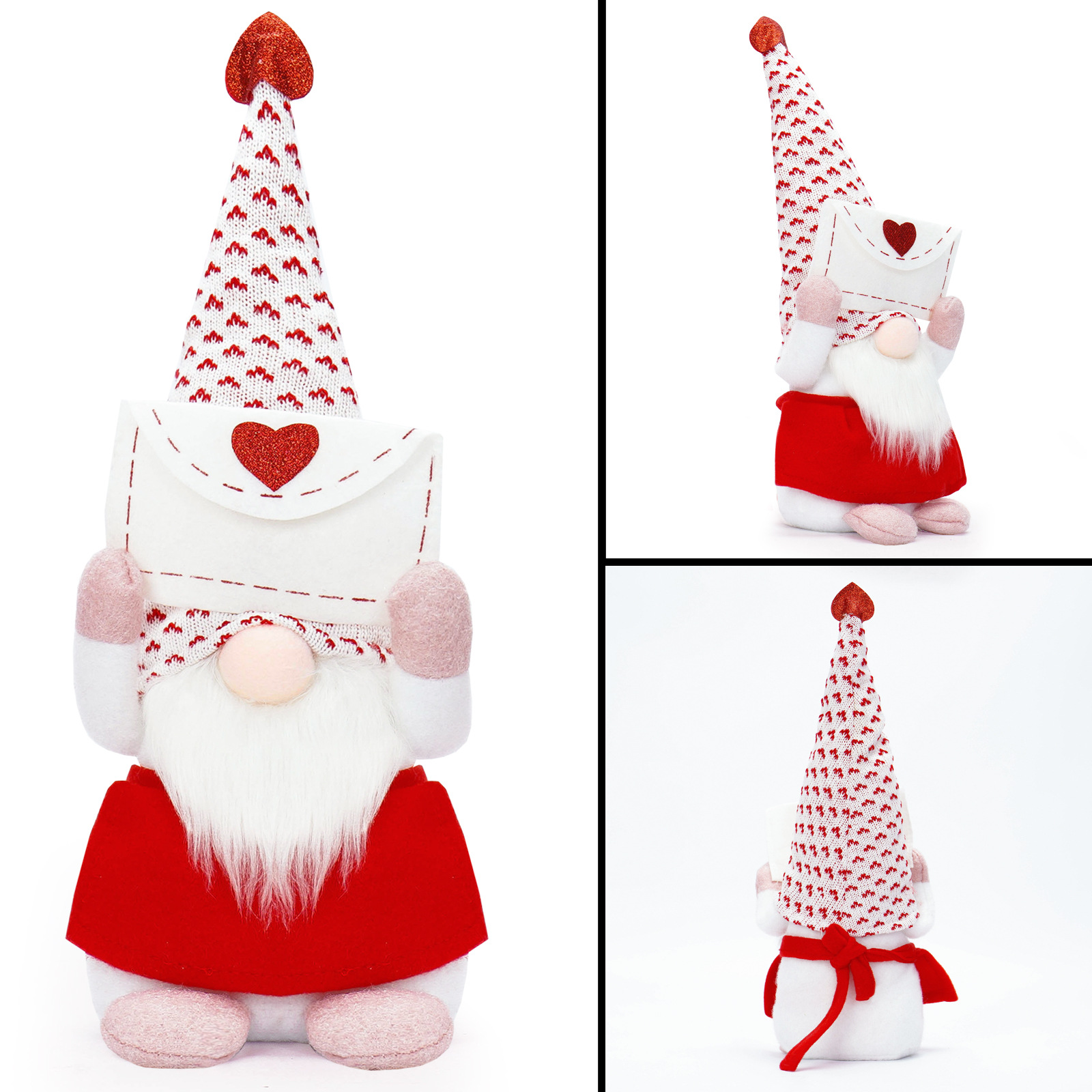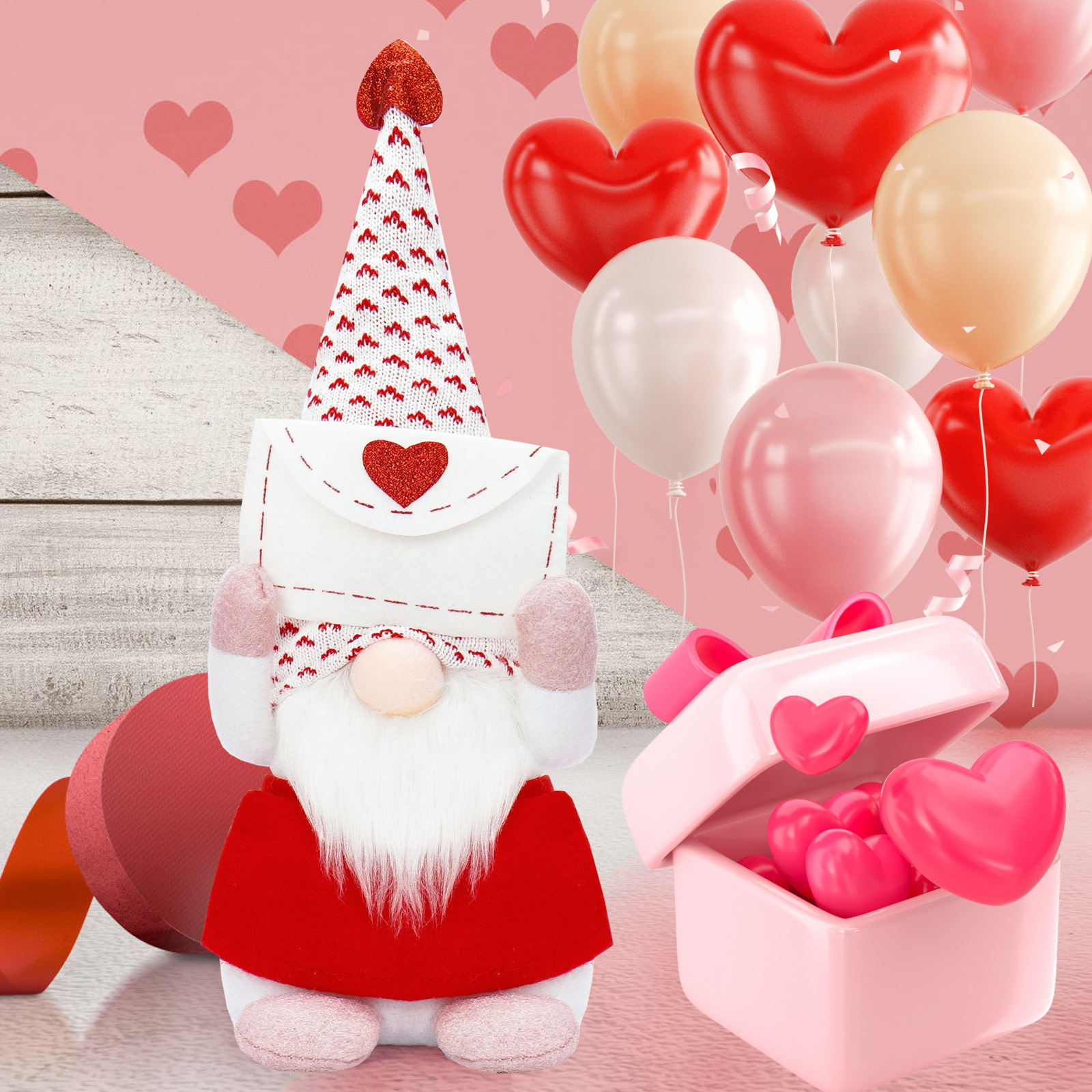 Nuevo Día de San Valentín sin rostro muñeca sobre encantador enano ventana apoyos adornos