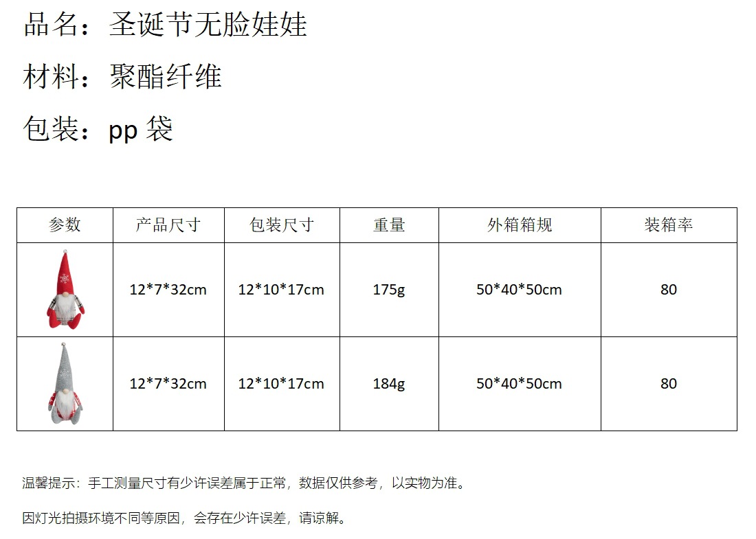 Cross-border Navidad muñeca sin rostro Rudolf vacaciones decoración copo de nieve Campana bordada muñeca decoración de la muñeca al por mayor