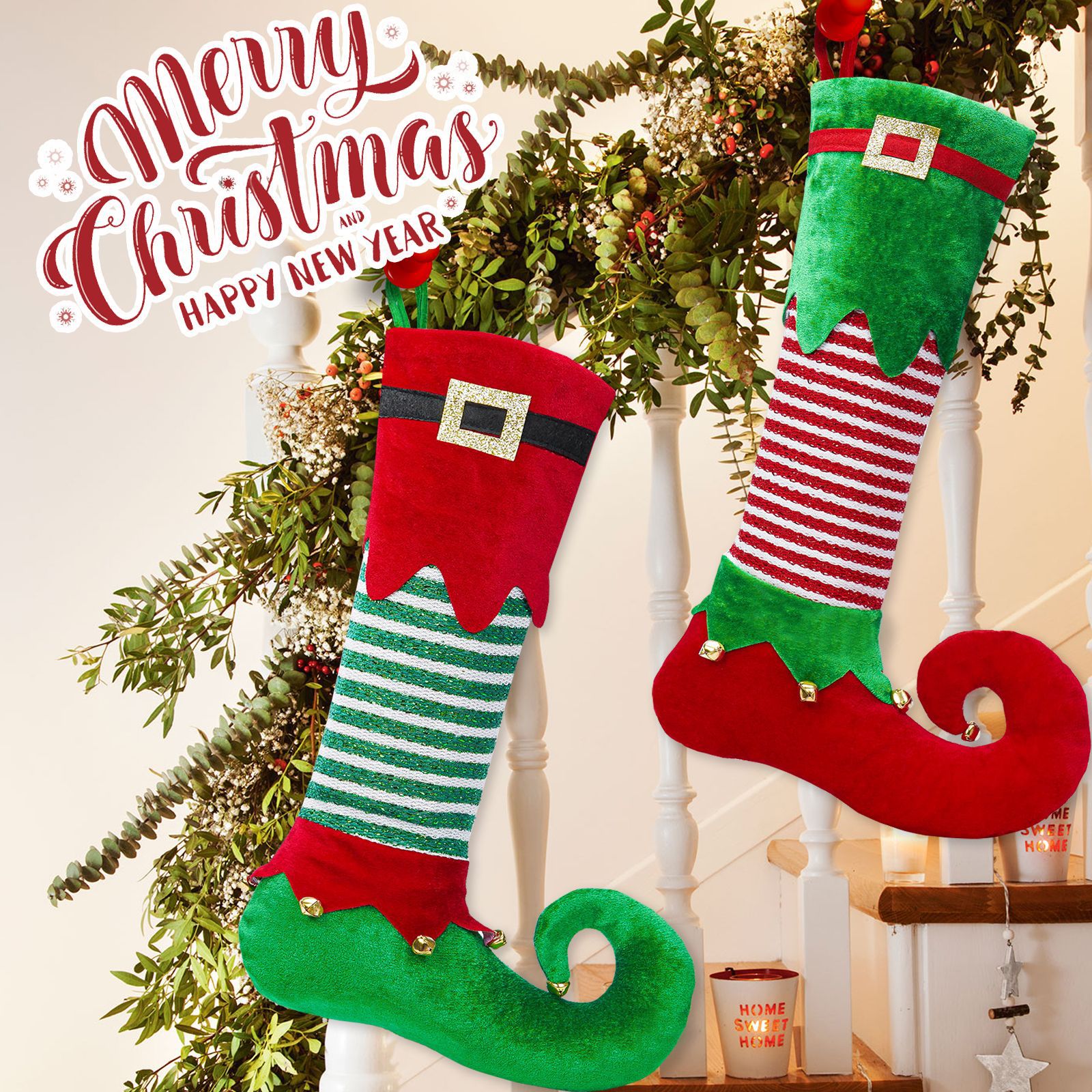 Nuevas decoraciones navideñas transfronterizas calcetines de navidad con campana elfo calcetines con letras regalo colgante de árbol de navidad