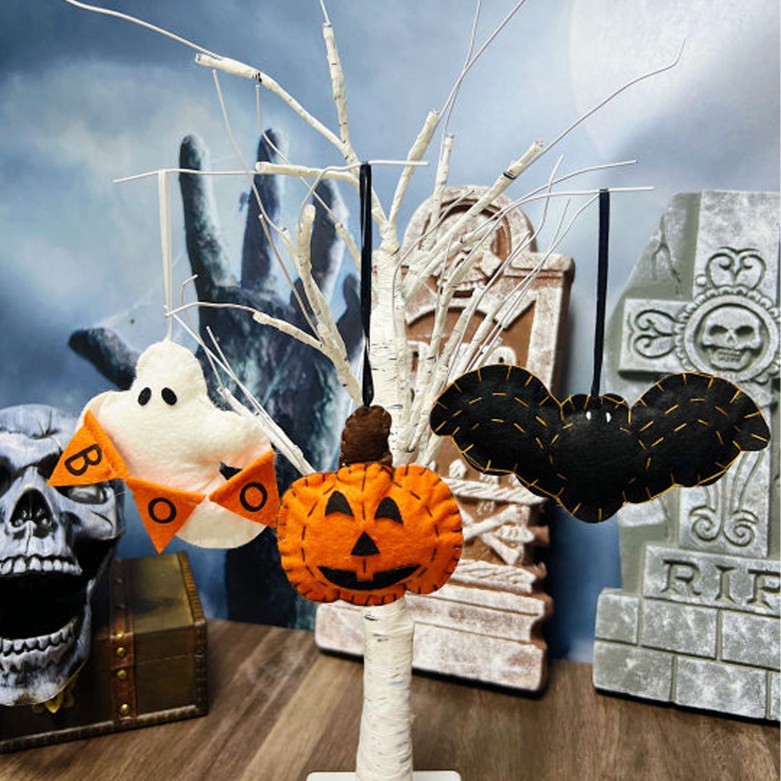 Transfronterizo nuevo colgante de fiesta de Halloween fantasma blanco murciélago de calabaza de peluche tridimensional colgante de felpa colgante de cuerda