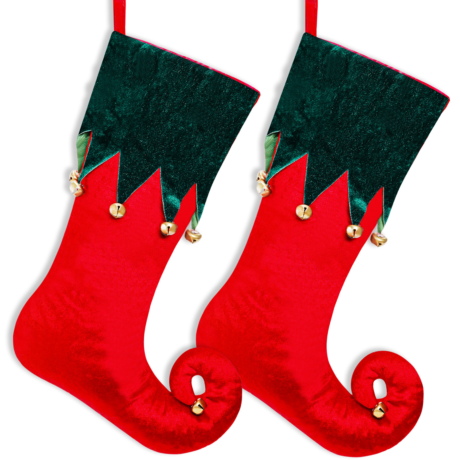 Cross-border nuevo terciopelo calcetines de Navidad elfo Garter Bell decoraciones de Navidad calcetines de Navidad bolsa de regalo colgante