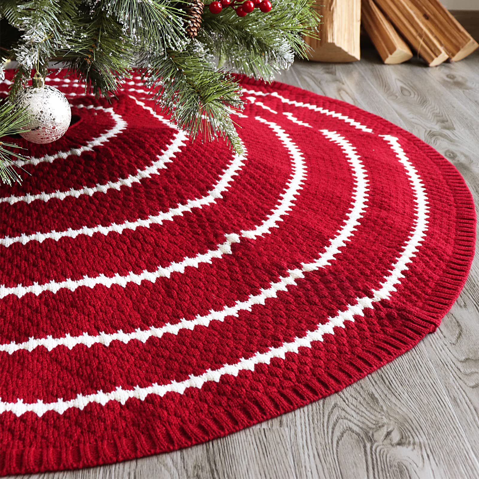 Transfronterizo nuevo árbol de navidad suministros de decoración árbol de navidad delantal inferior círculo blanco fondo rojo de punto falda de árbol de navidad