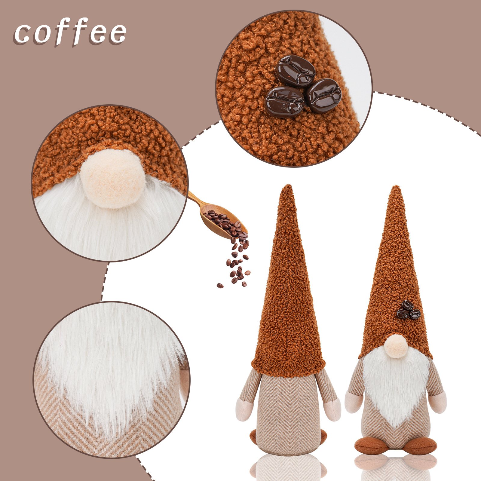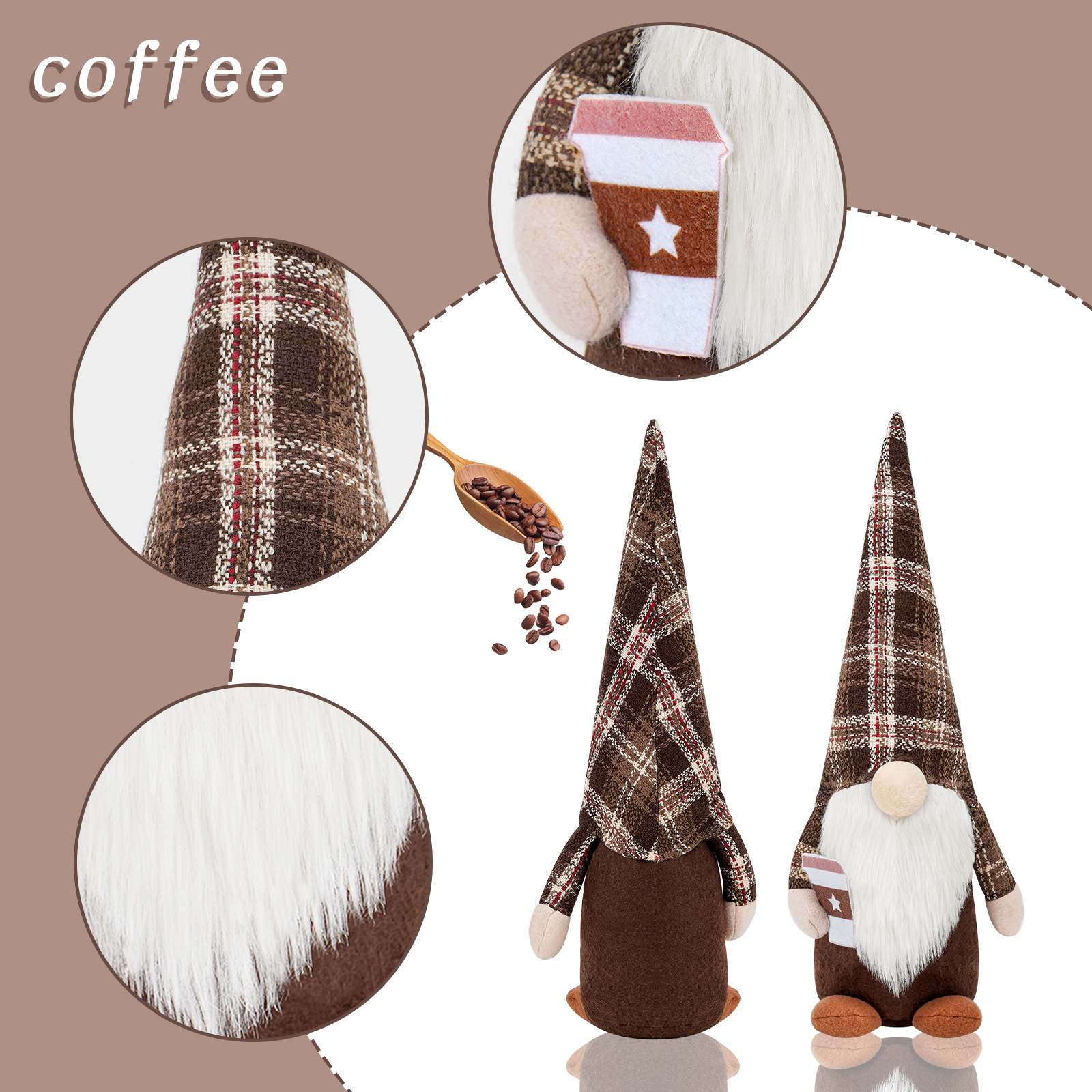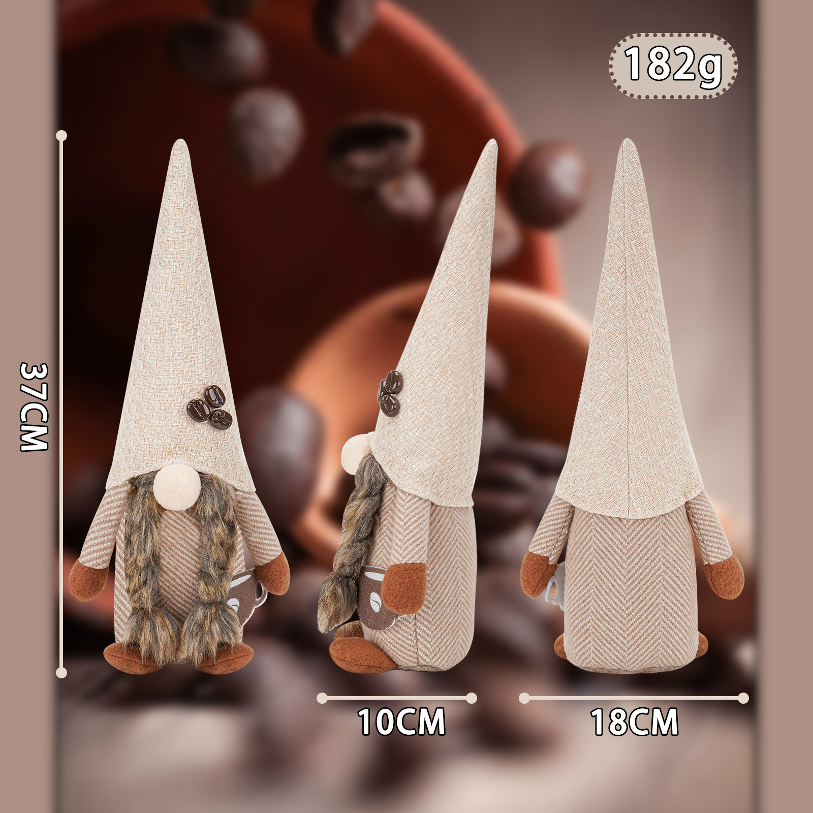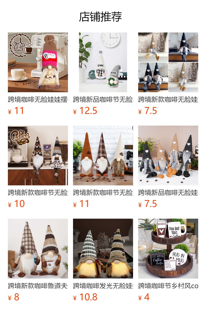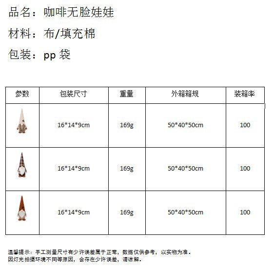 Nueva muñeca sin rostro del Festival de café transfronterizo con granos de café Rudolf muñeca decoración de la ventana decoraciones para el hogar