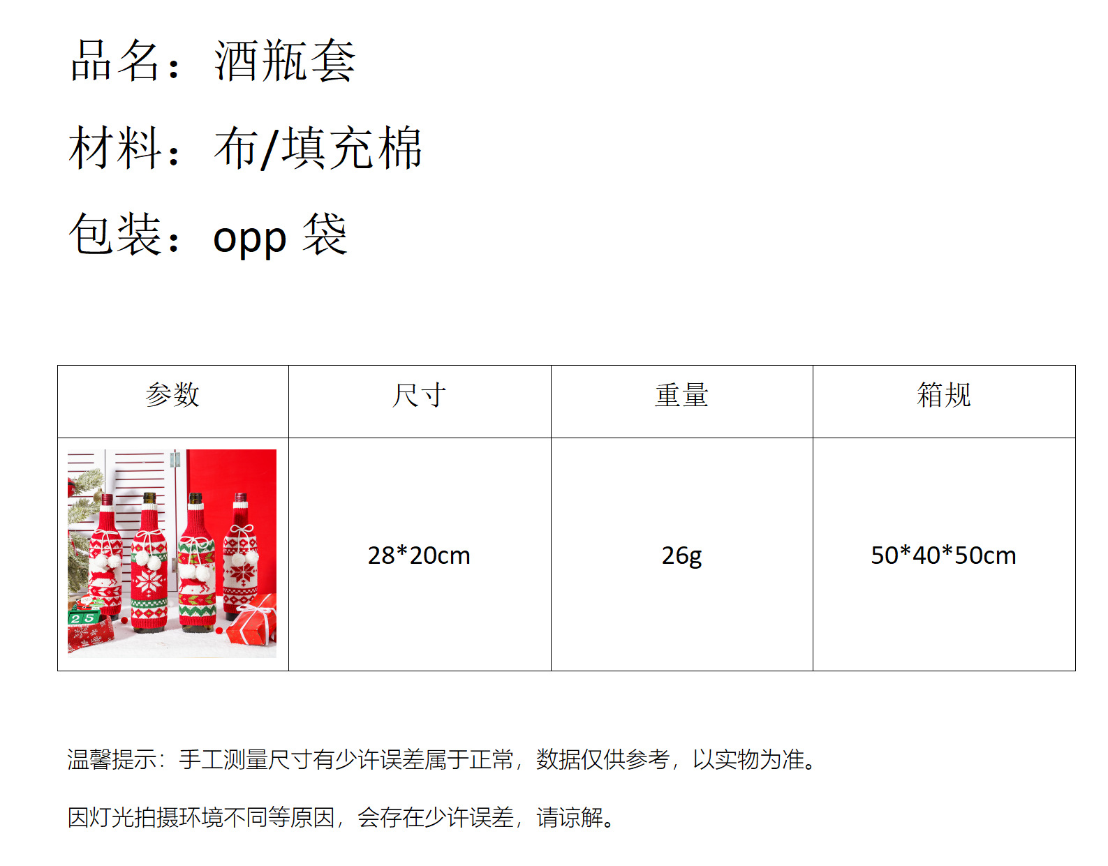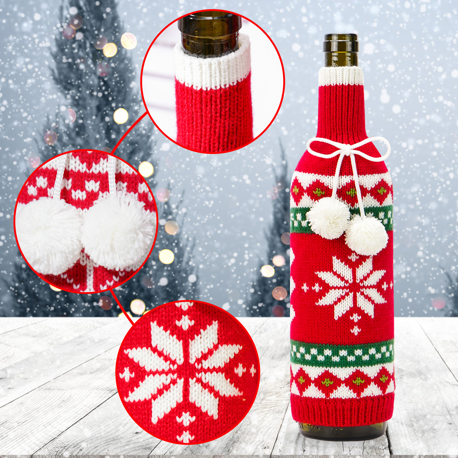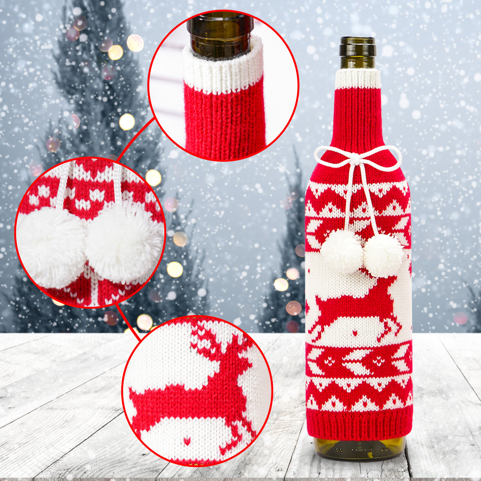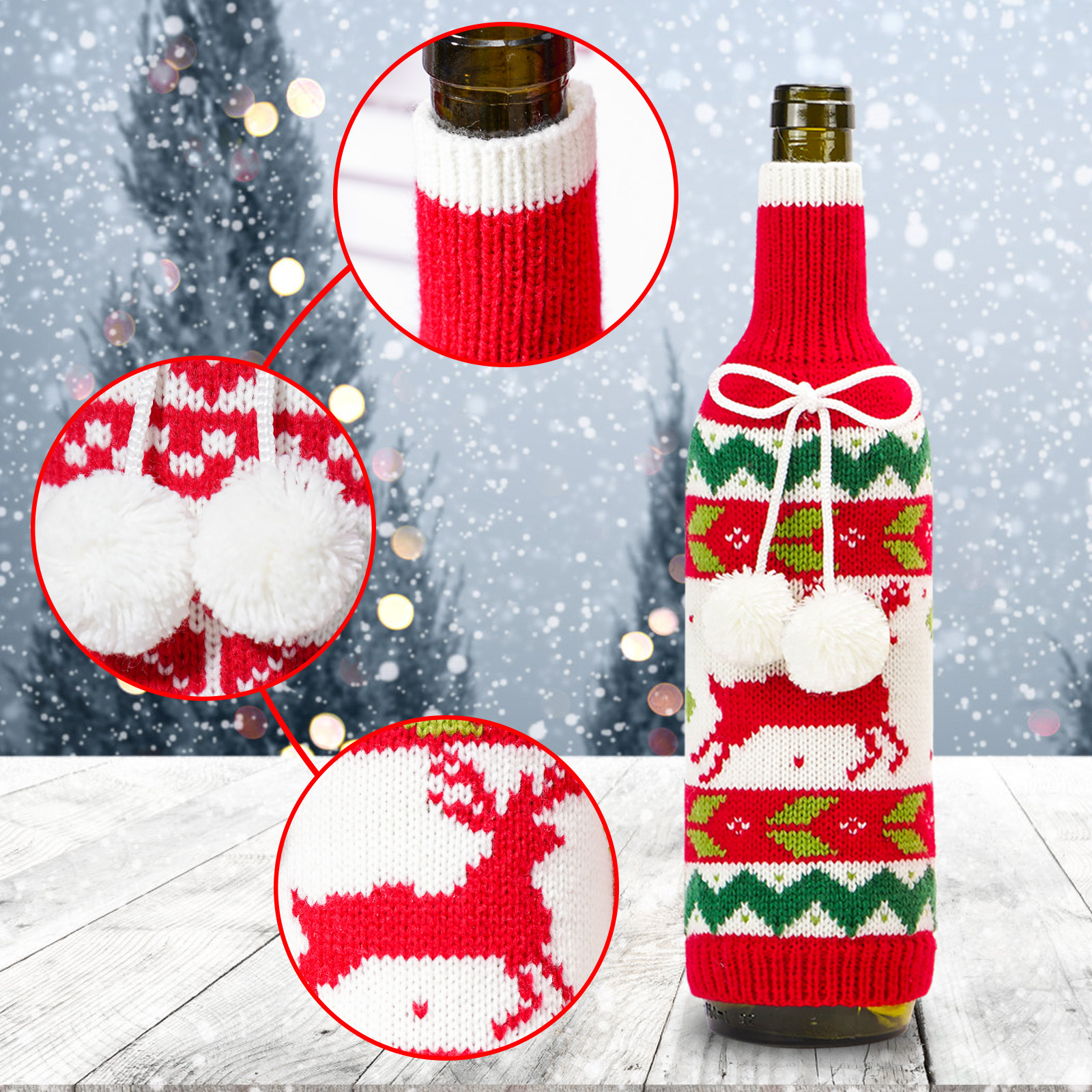 | Color | Tapa de la botella de vino de los ciervos,Cubierta de la botella de vino a rayas de color de ciervo,Cubierta de botella de vino rayada de color copo de nieve,Cubierta de la botella de vino del copo de nieve |