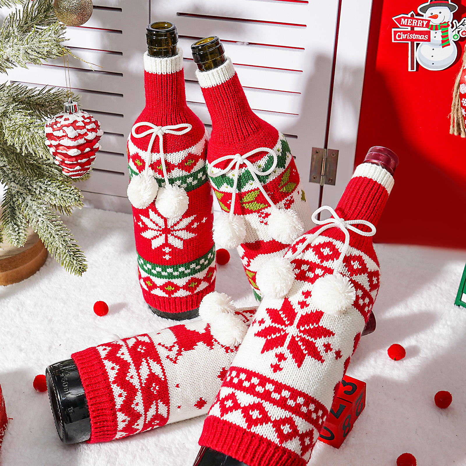 Cruzar la frontera nueva Navidad nuevo pompón de punto botella de vino creativo vino tinto champán botella cubierta restaurante atmósfera diseño