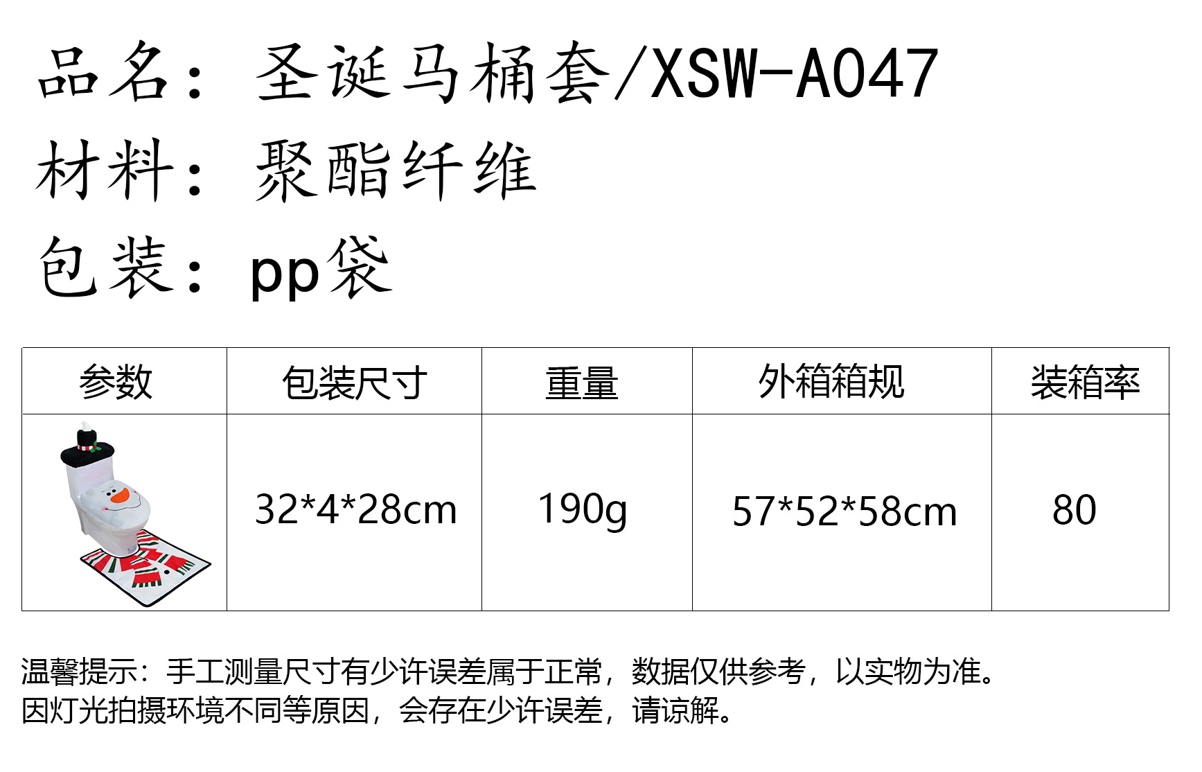 | Color | Navidad cubierta del inodoro |