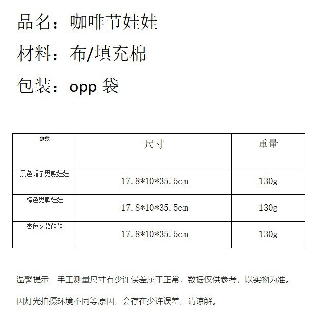 | Color | Muñeca de hombre sombrero negro,Muñeca de hombre marrón,Albaricoque muñeca femenina |