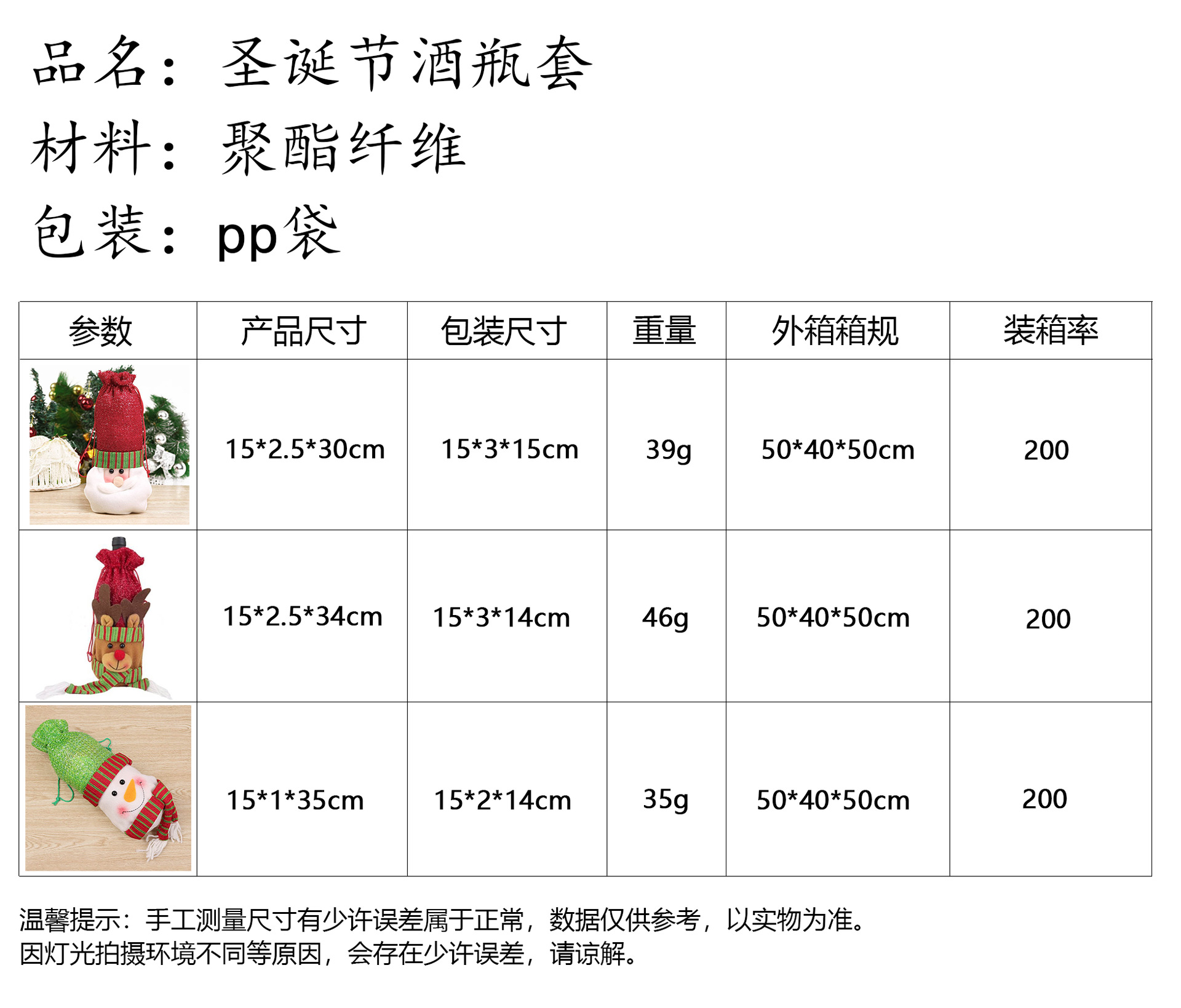 | Color | Cubierta de botella de vino para ancianos,Cubierta de la botella de vino de muñeco de nieve,Cubierta de la botella de vino Elk |