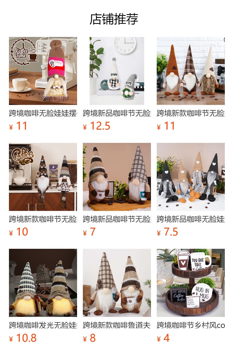 Transfronterizo nuevo café Festival Rudolf cara sin cara muñeca decoración creativa café pie muñeca ventana Decoración