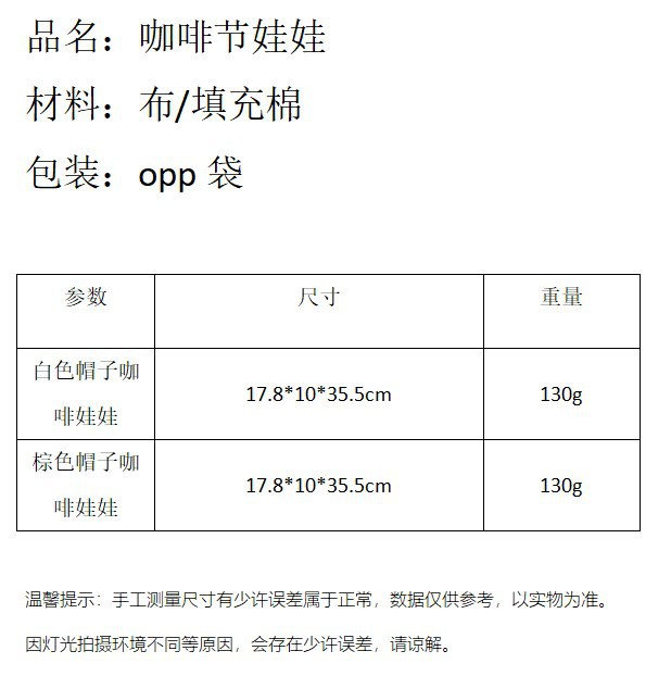 | Color | Muñeca blanca del café del sombrero,Muñeca de café sombrero marrón |