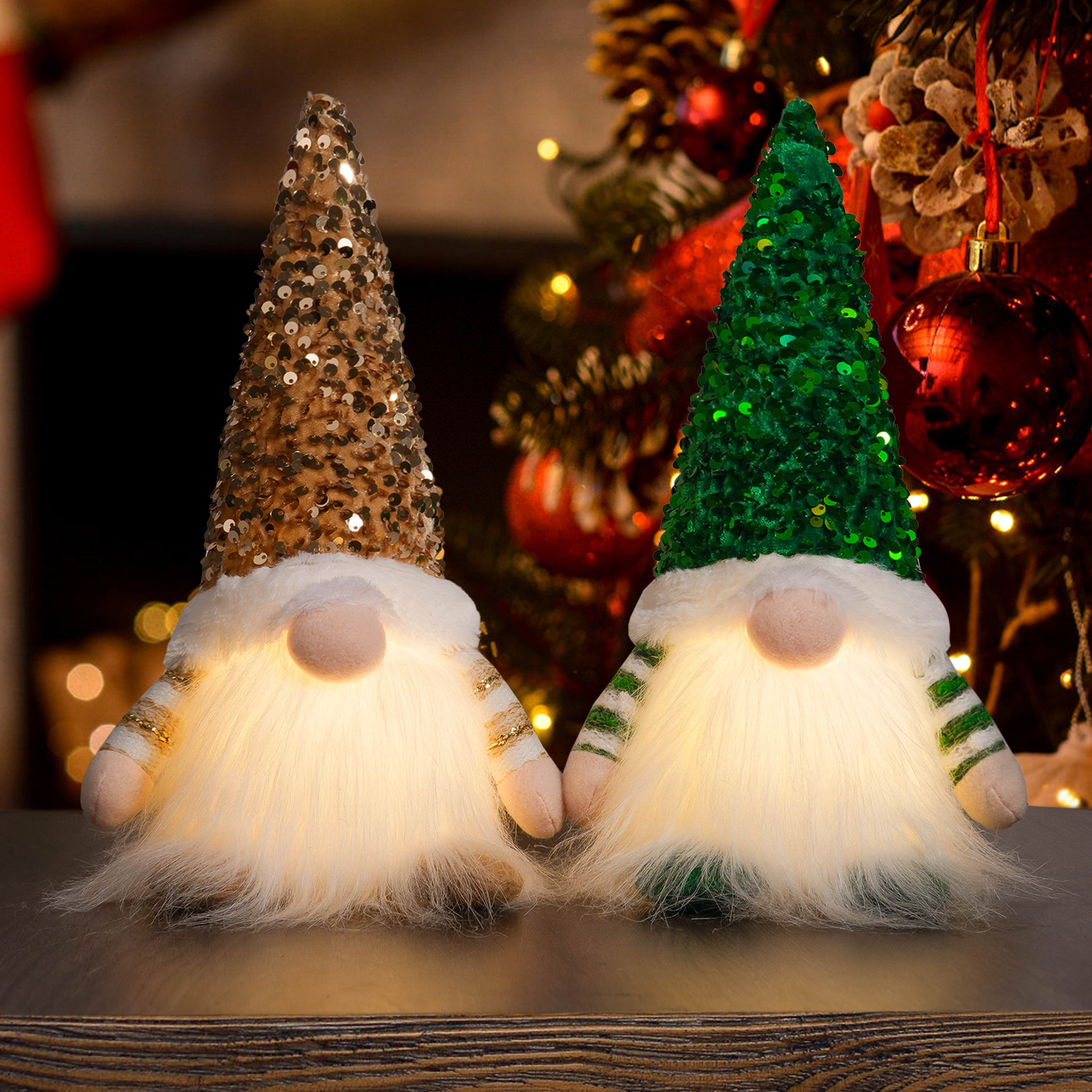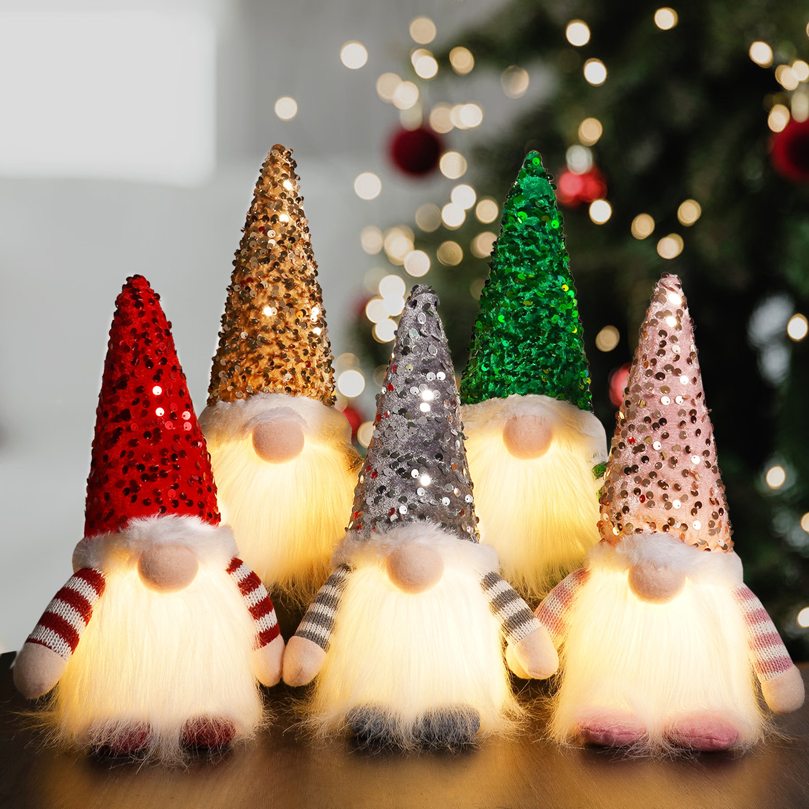 Navidad transfronteriza muñeca sin rostro decoración gorra de sequillas puede brillar adornos encantadores enanos Rudolf