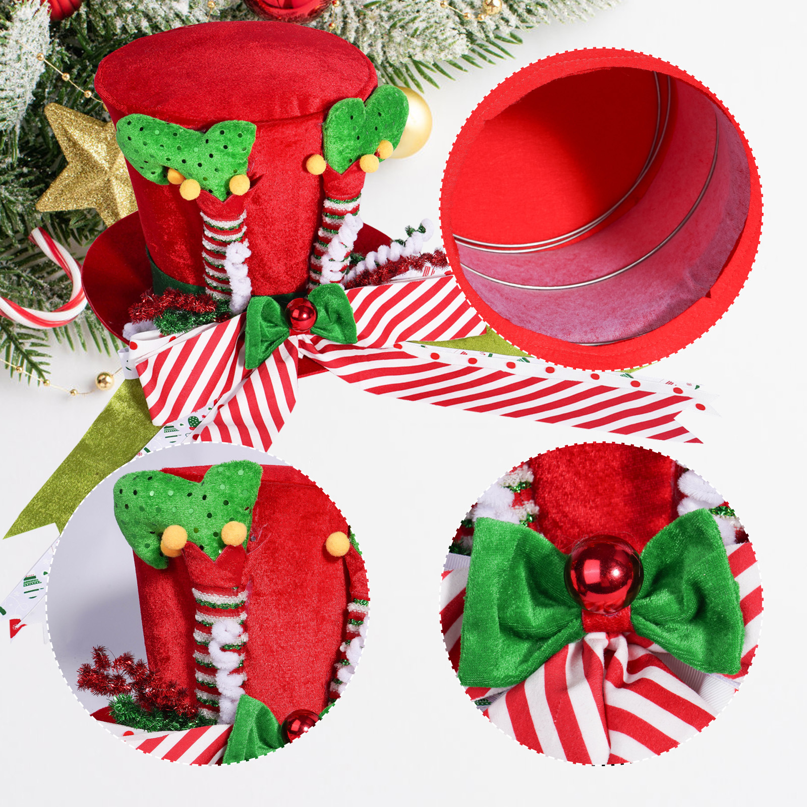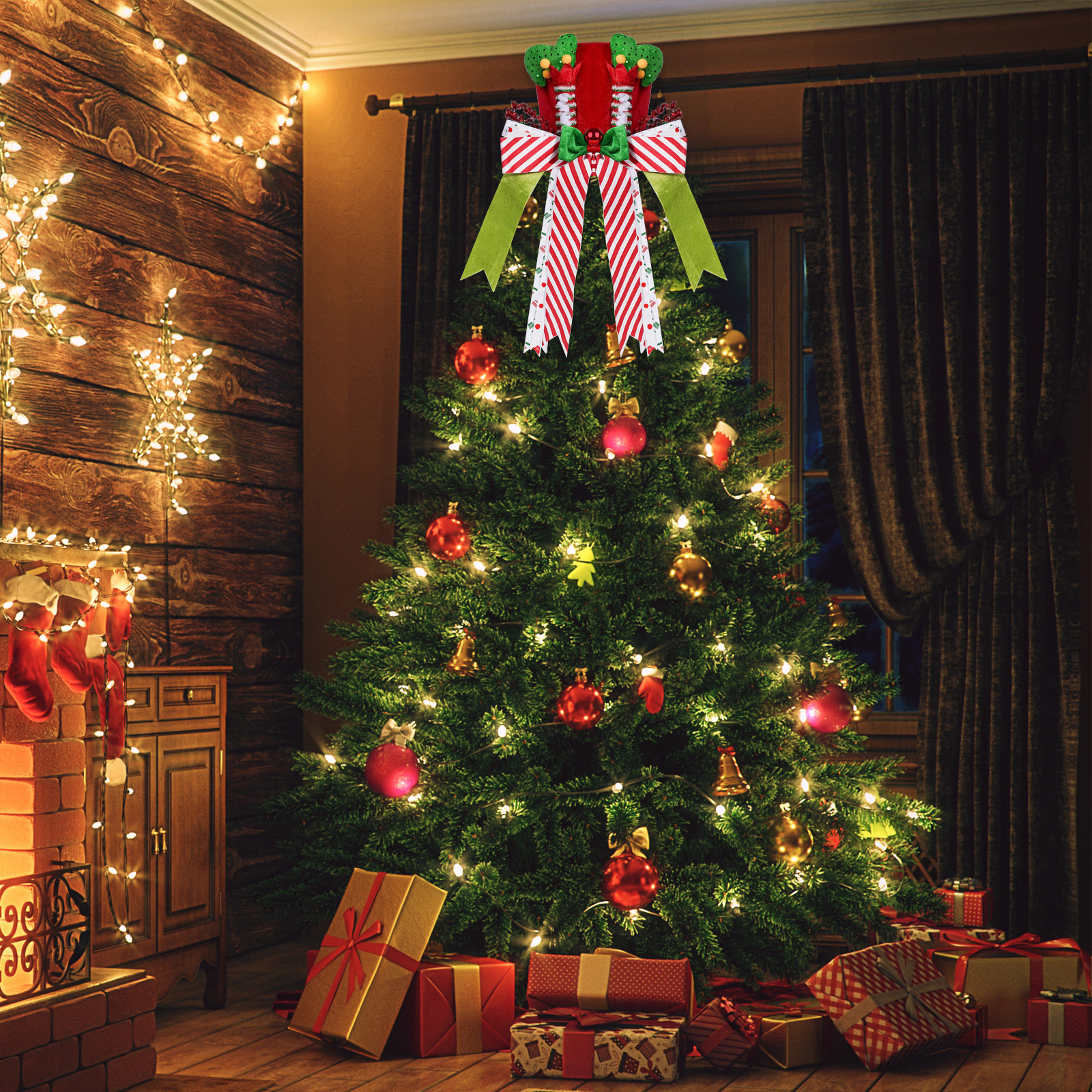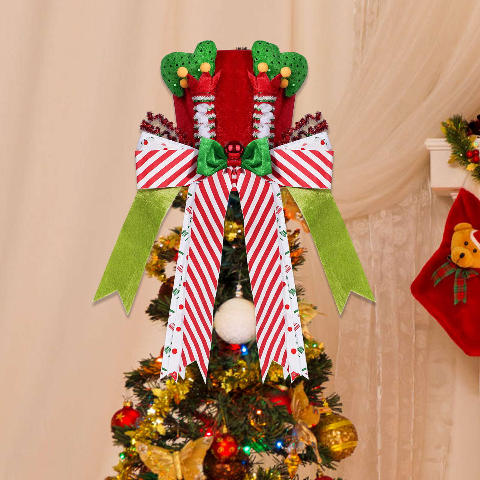 Adornos para árbol de Navidad, topper de árbol con lazo a rayas, sombrero de árbol, topper de árbol de Navidad con lentejuelas, adorno colgante
