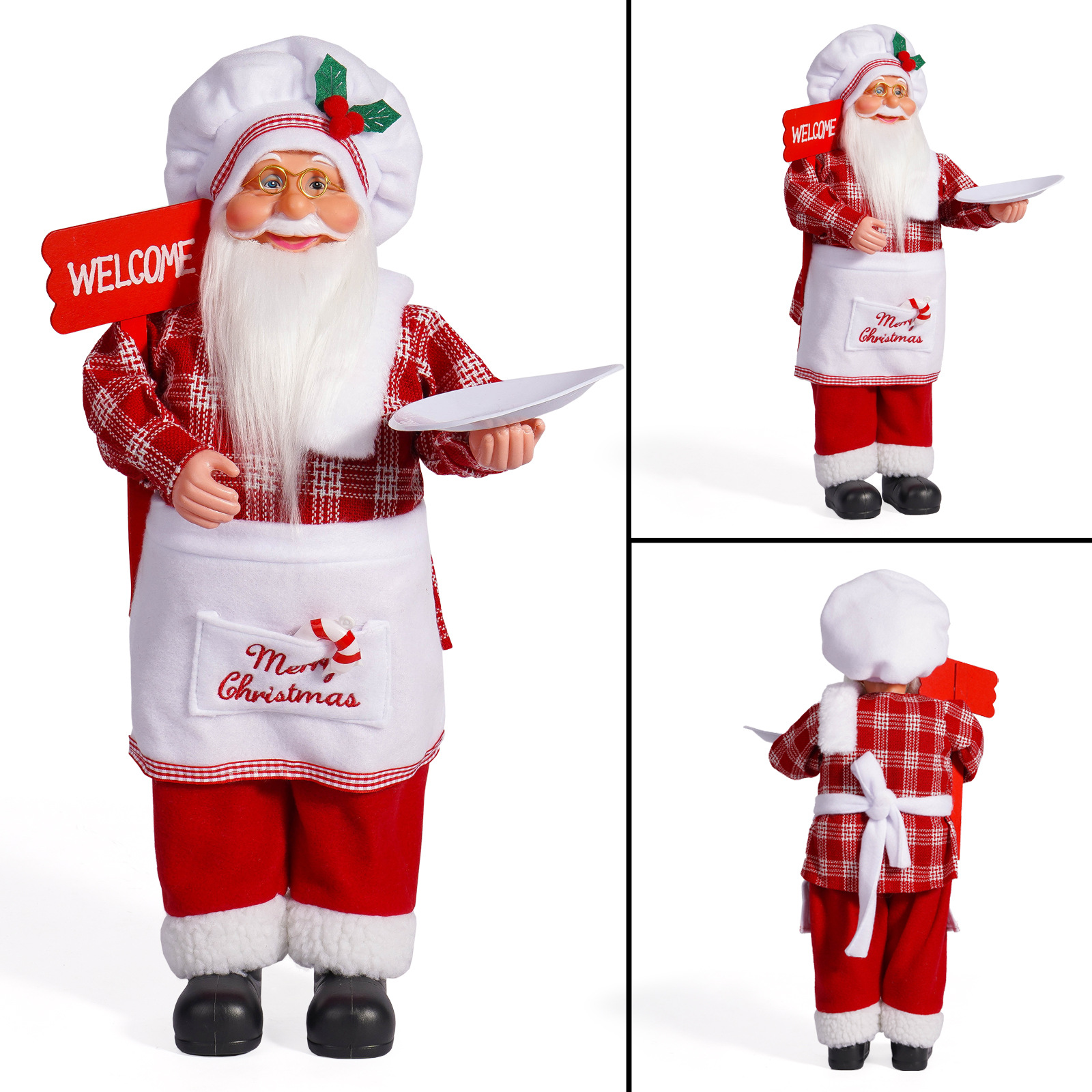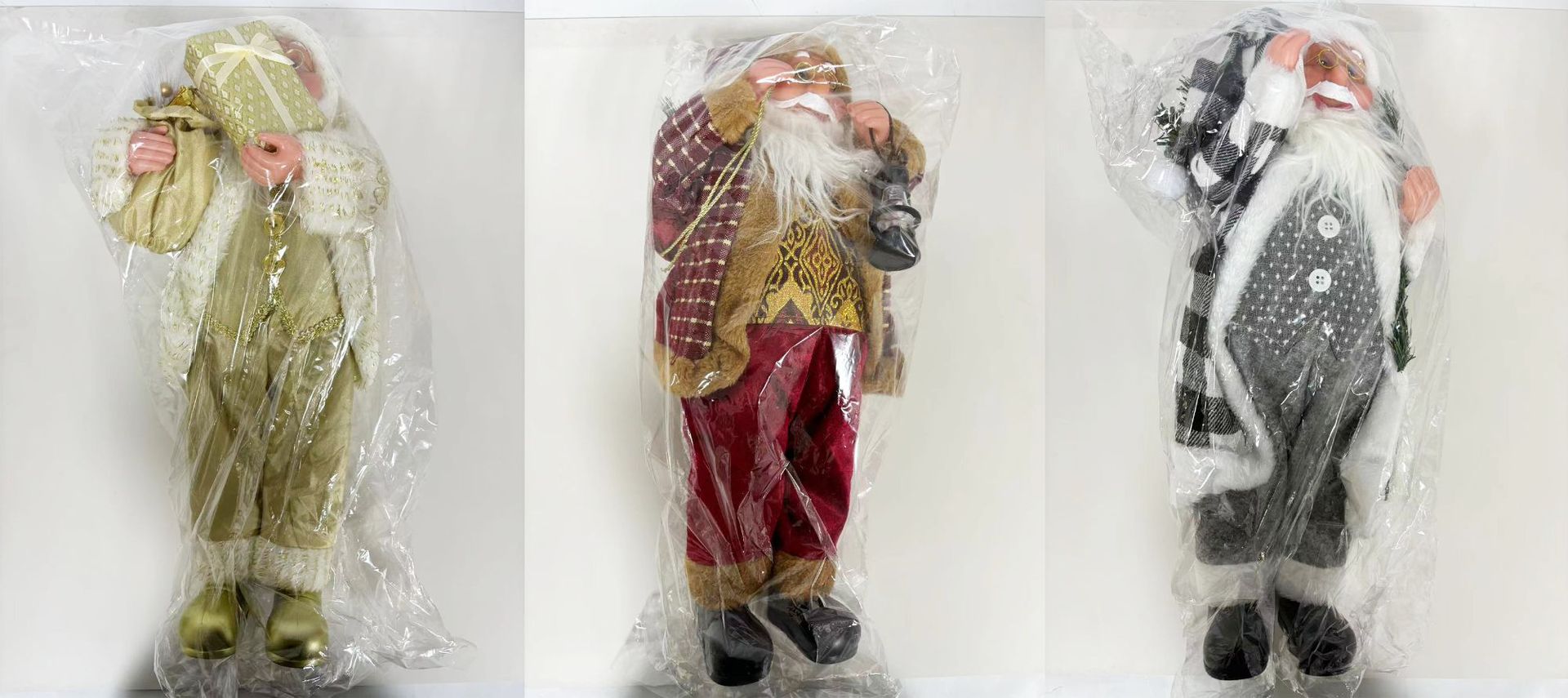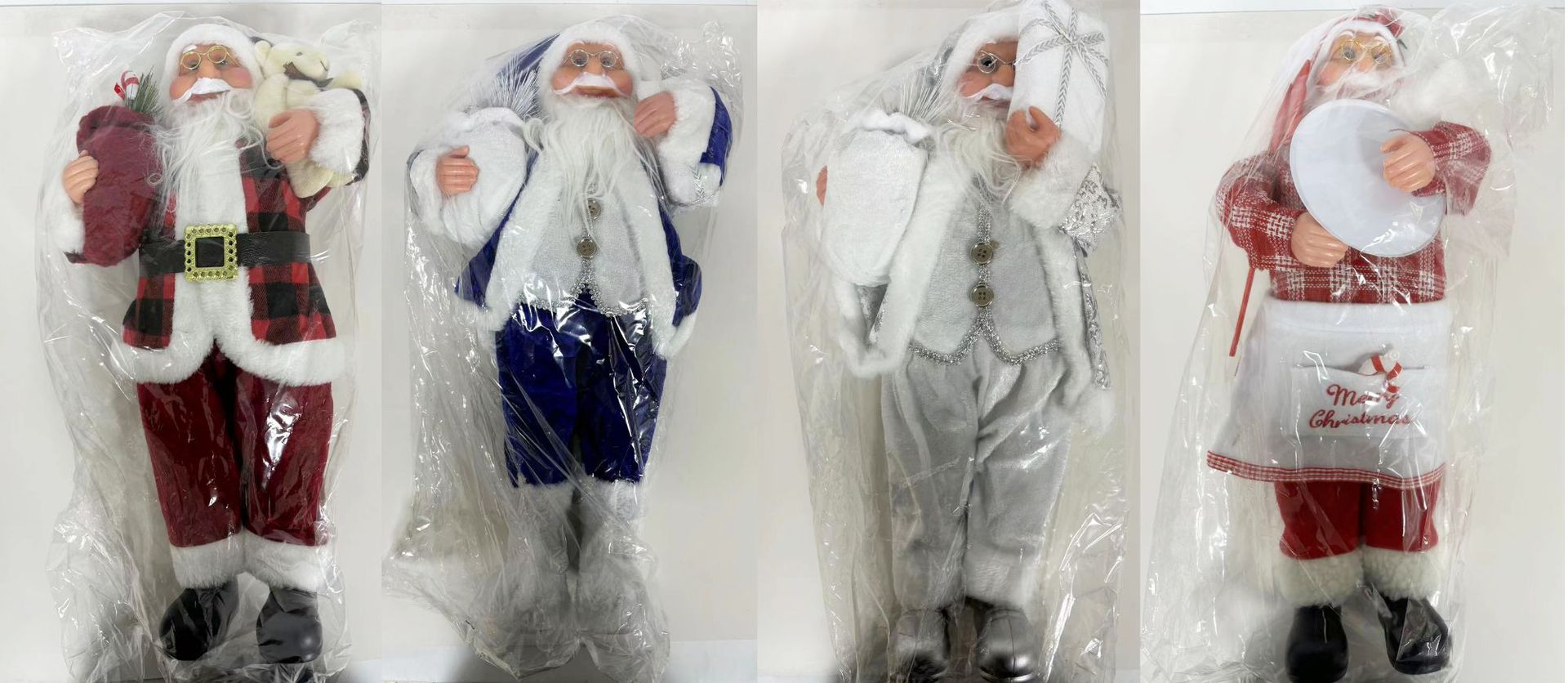 | Color | Papá Noel dorado, Papá Noel chef, Papá Noel a cuadros en blanco y negro, Papá Noel a cuadros en vino, Papá Noel a cuadros en rojo y negro, Papá Noel blanco, Papá Noel azul |